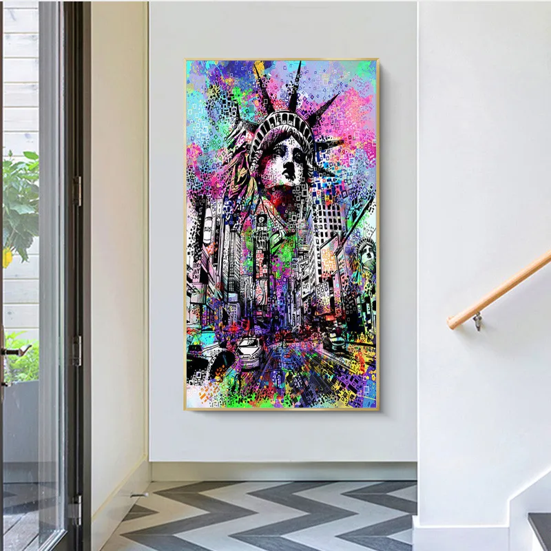 Красочная уличная граффити искусство алмазная живопись абстрактная Статуя Свободы Стразы Вышивка мозаика роспись Гостиная декорации