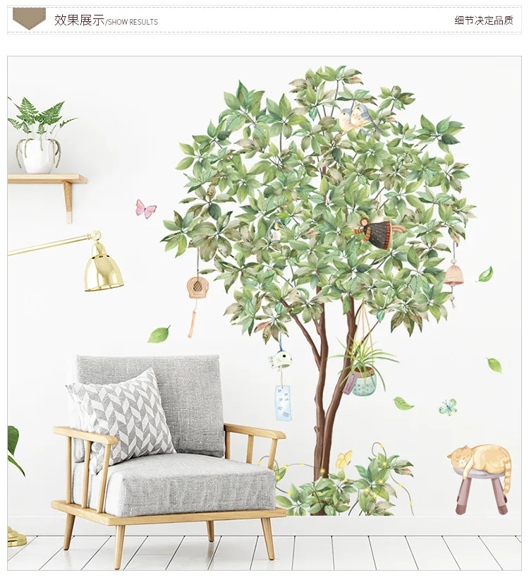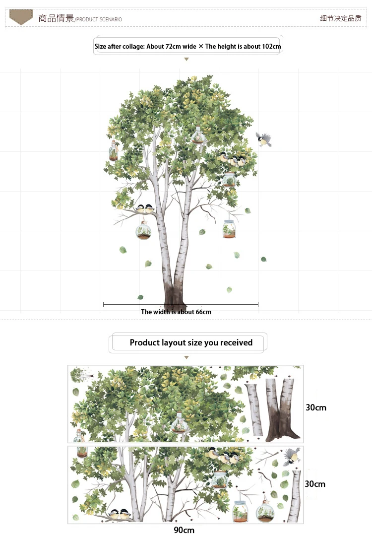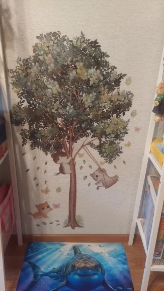 Красивое, небольшое дерево! Маленькому ребенку (3-5 лет) будет интересно его разглядывать на уровне своего роста. Много интересных деталей. Качество печати высокое. Рисунки красивые, под акварель. Наклеить было тяжеловато, так как две части большие, постоянно липли как попало к гладкой поверхности шкафа. Приходилось переклеивать, из-за растяжения наклейка немного деформировалась. Есть пузыри, несмотря на то, что наклеивала с помощью поставленной карты, выдавливая воздух по мере приклеивания. Но это не мешает рисунку смотреться красиво.