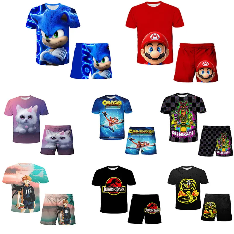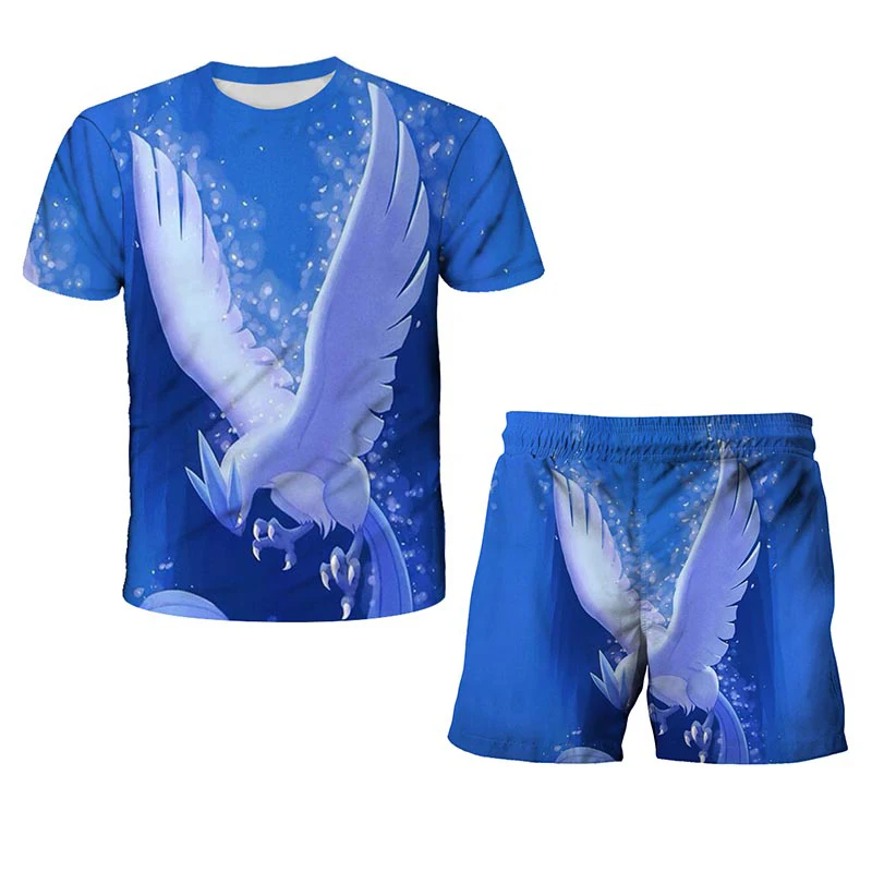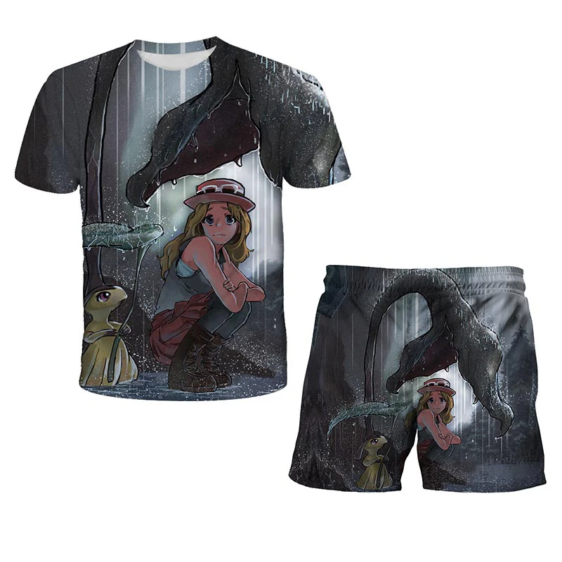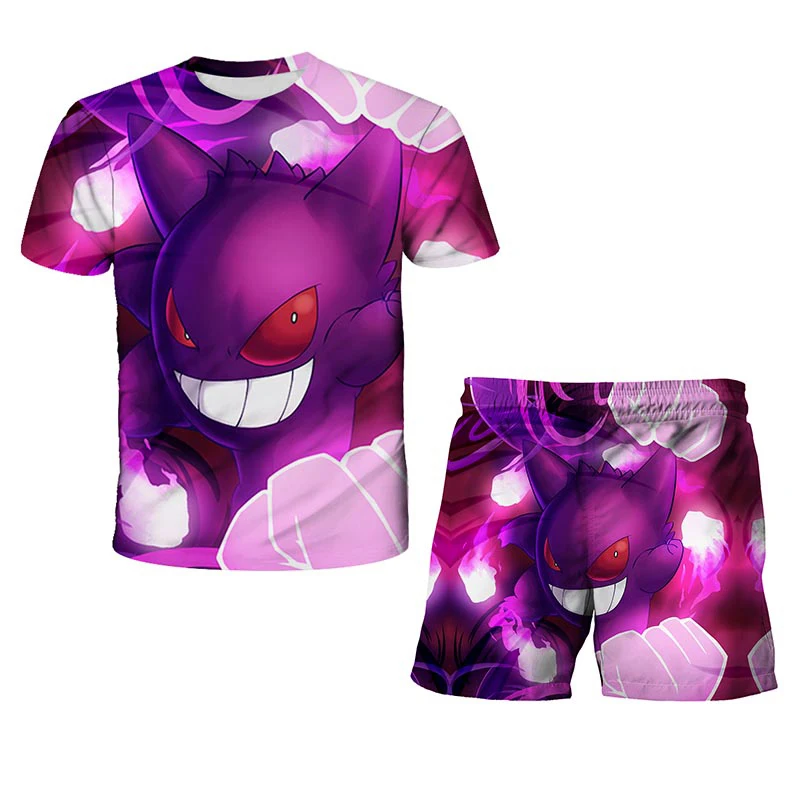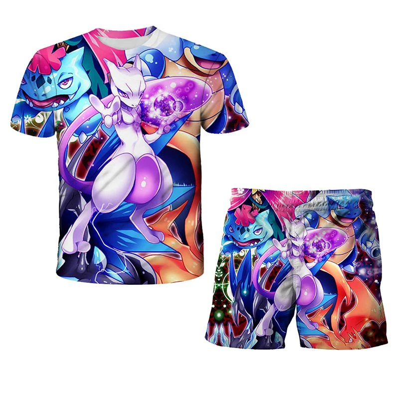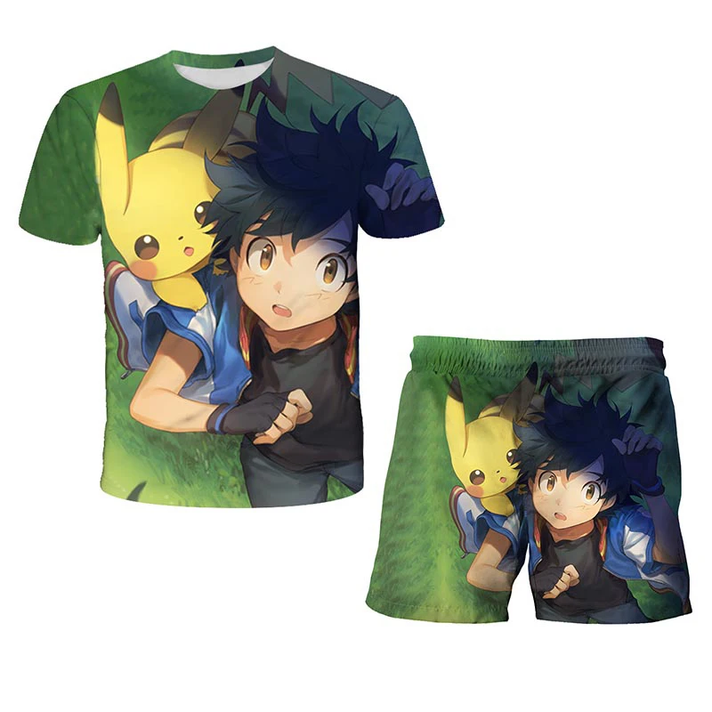 Футболка с покемоном, модная футболка для мальчиков, комплект из 2 предметов, футболка и шорты, комплекты детской одежды, Пикачу, одежда для мальчиков и девочек
