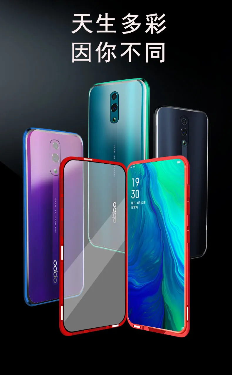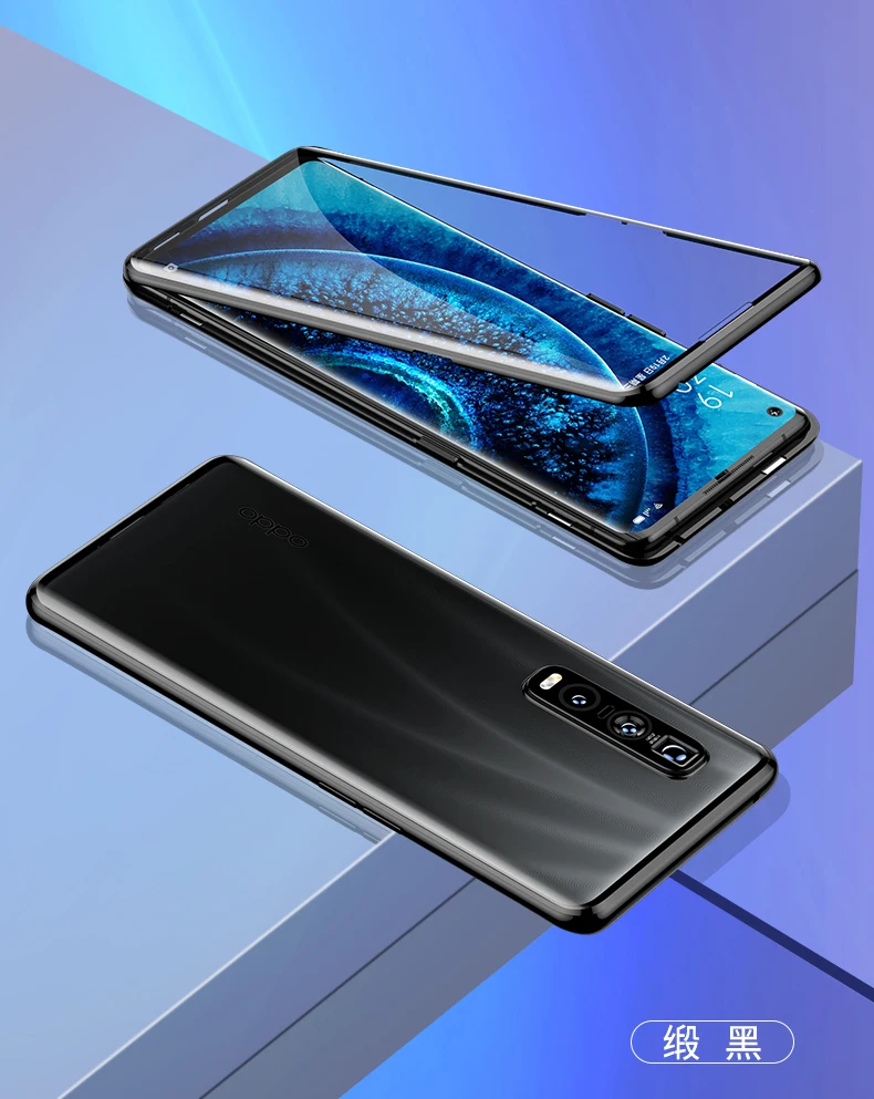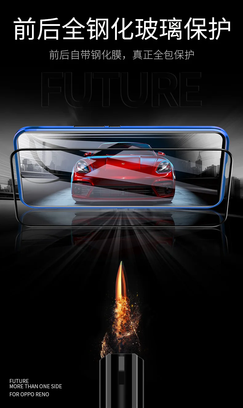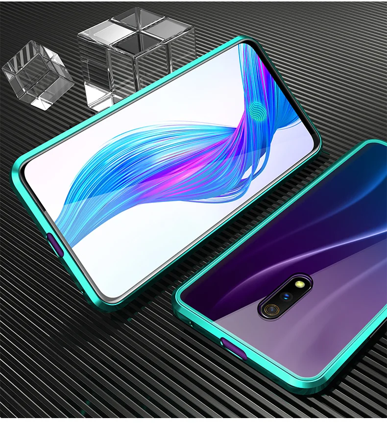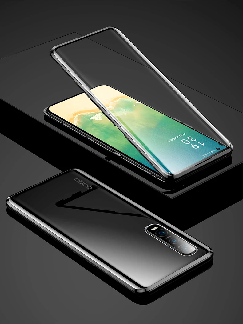Двухсторонний прозрачный 9H закаленное стекло Магнитный адсорбционный чехол для телефона для OPPO Роскошный металлический бампер 360 градусов полный защитный чехол