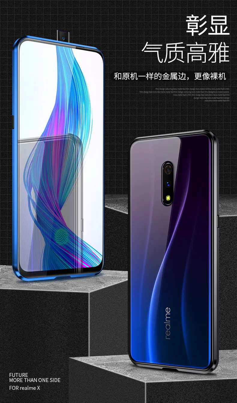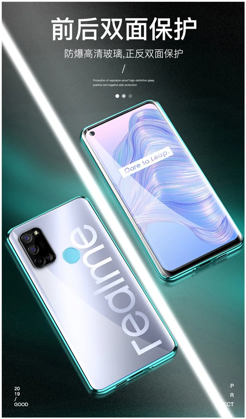 Магнитный чехол 360 дюйма, передний + задний, двухсторонний чехол из закаленного стекла для Realme 8 Pro C21 Q2 V5 Reno 5 6 Pro Plus OPPO A16, металлический бампер
