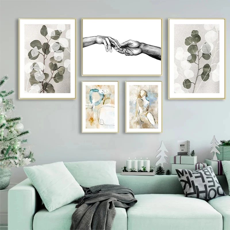 Живопись с листьями растений, свежая картина, домашний настенный ху...