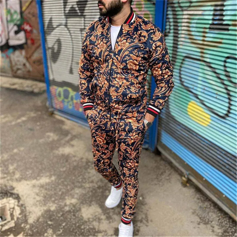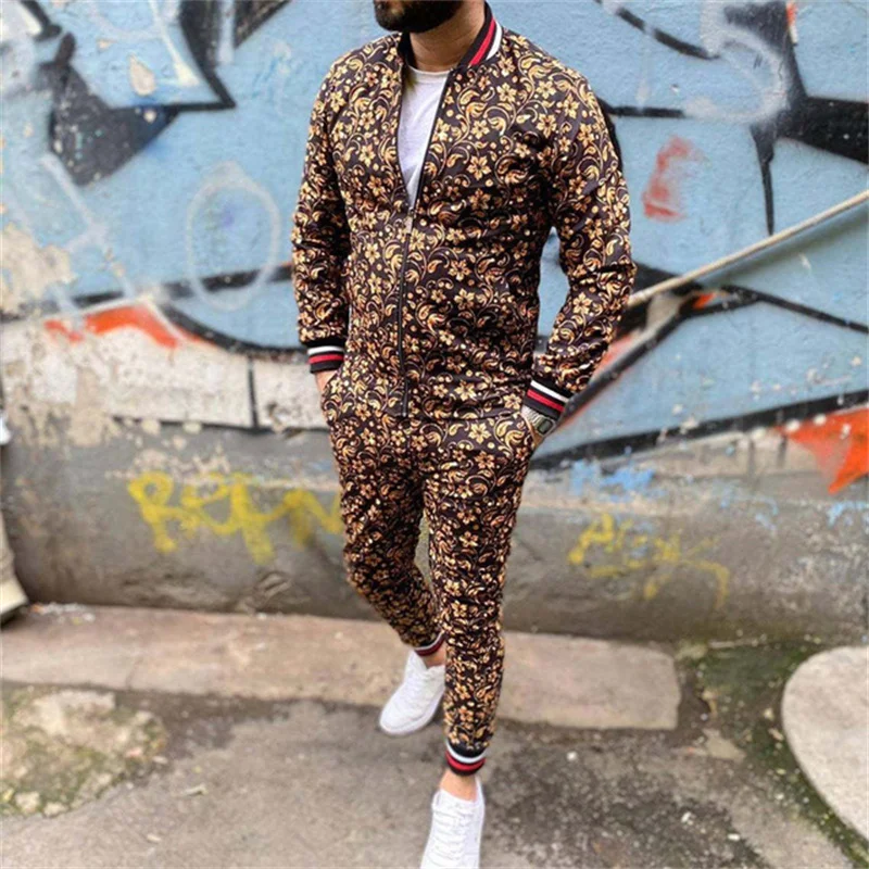 Костюм спортивный мужской с цветочным принтом, клетчатый пиджак и б...