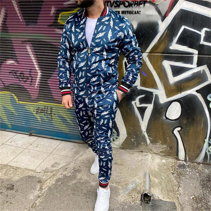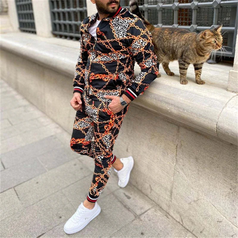 Мужской повседневный костюм на молнии, с воротником-стойкой