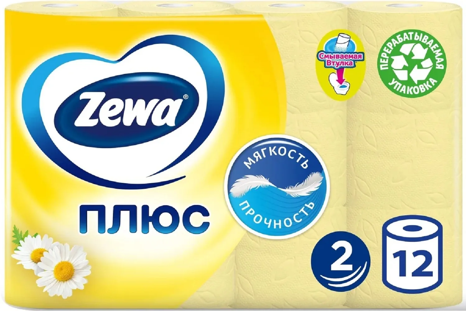 Туалетная бумага ZEWA ПЛЮС РОМАШКА, 2 слоя, 12 рулонов