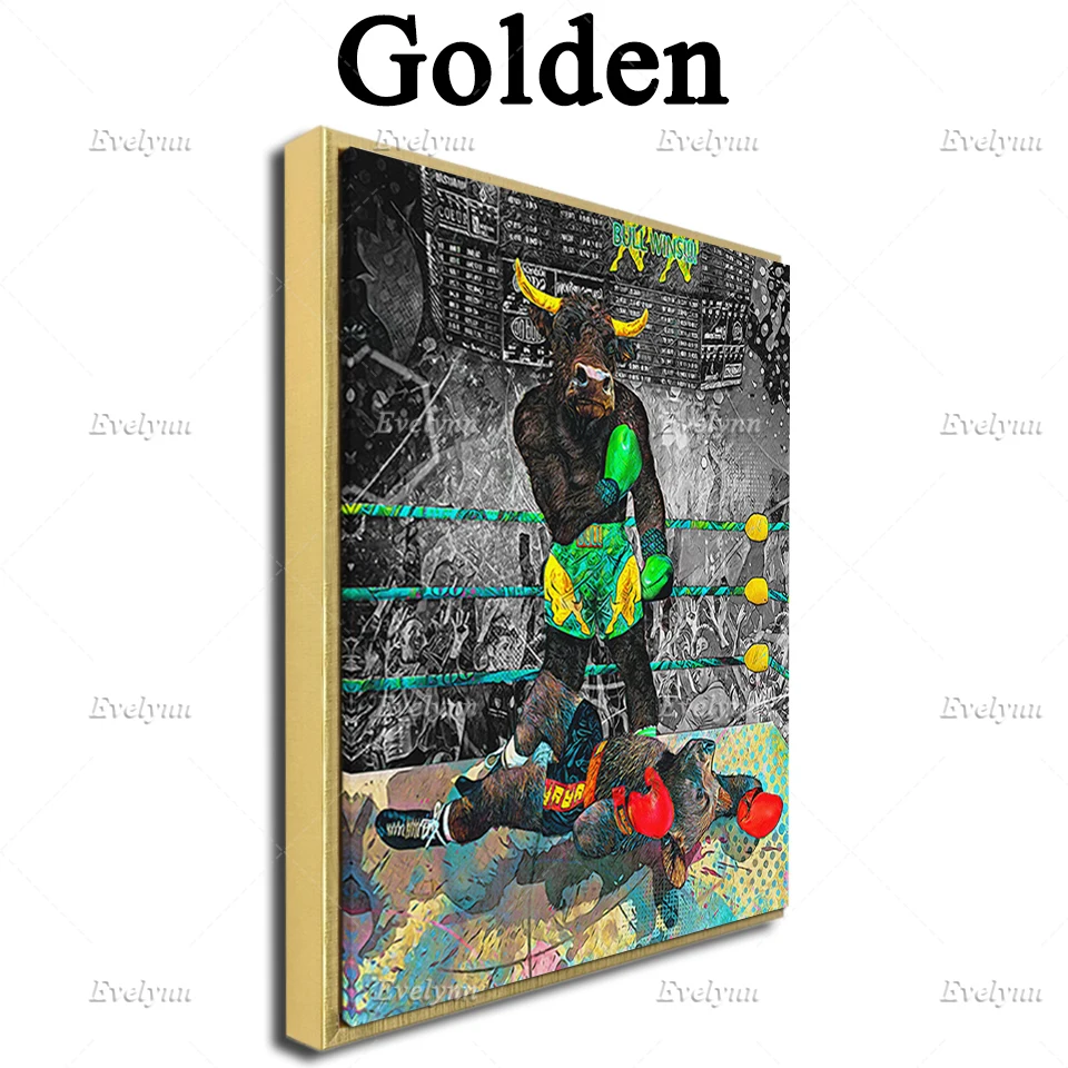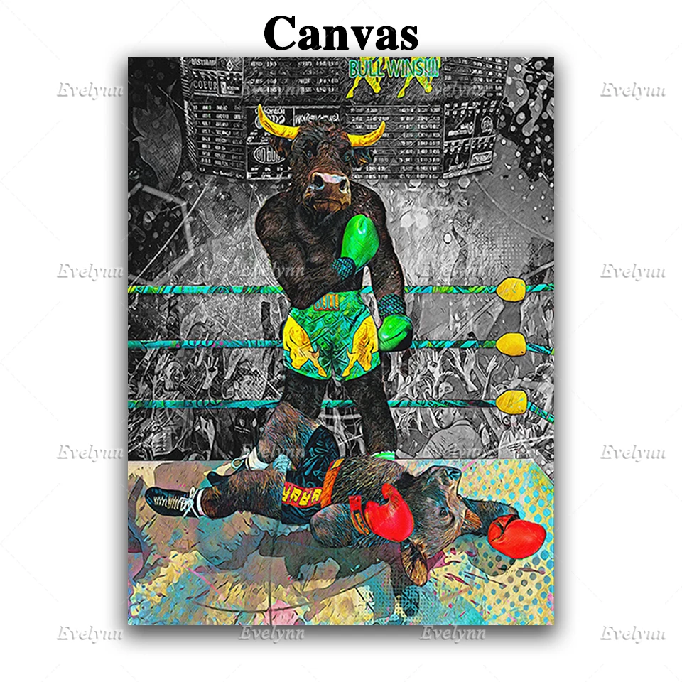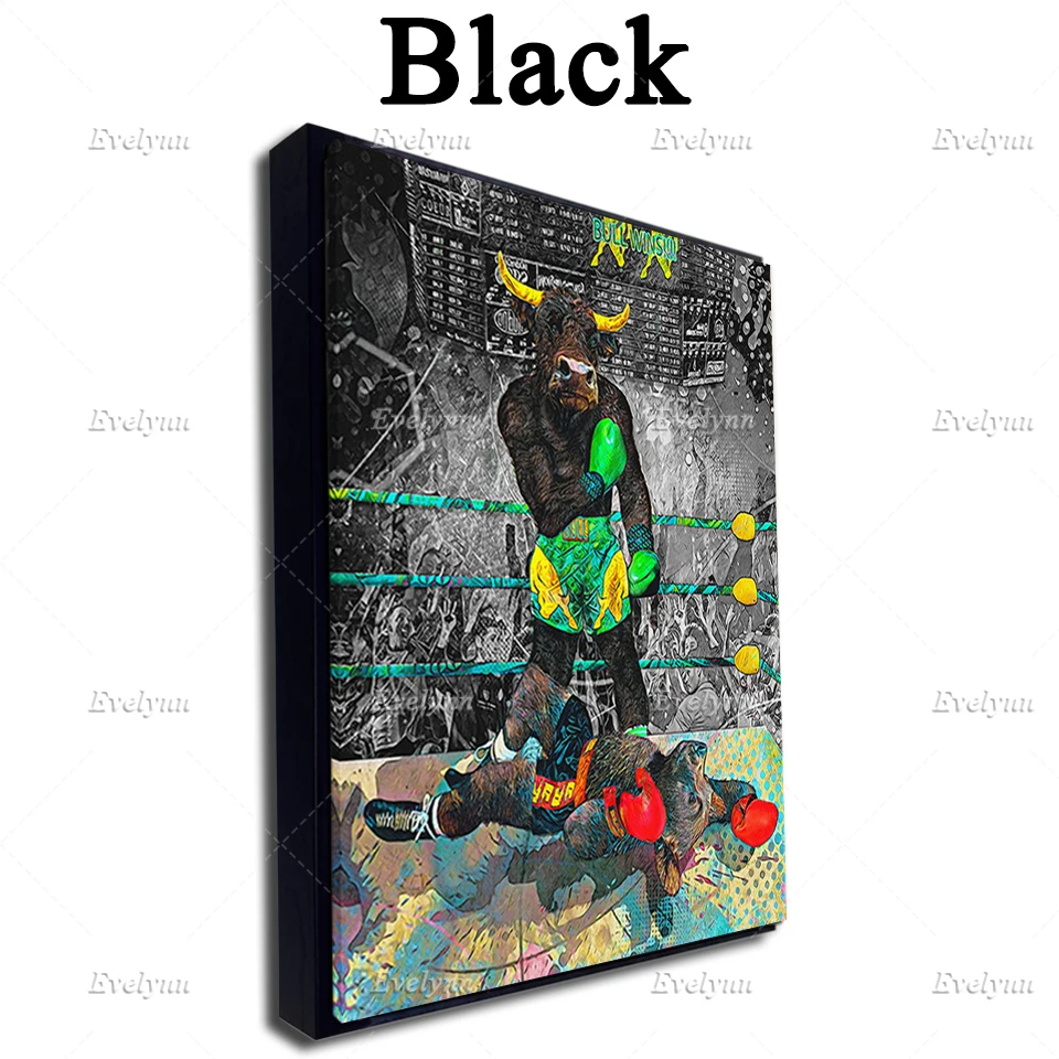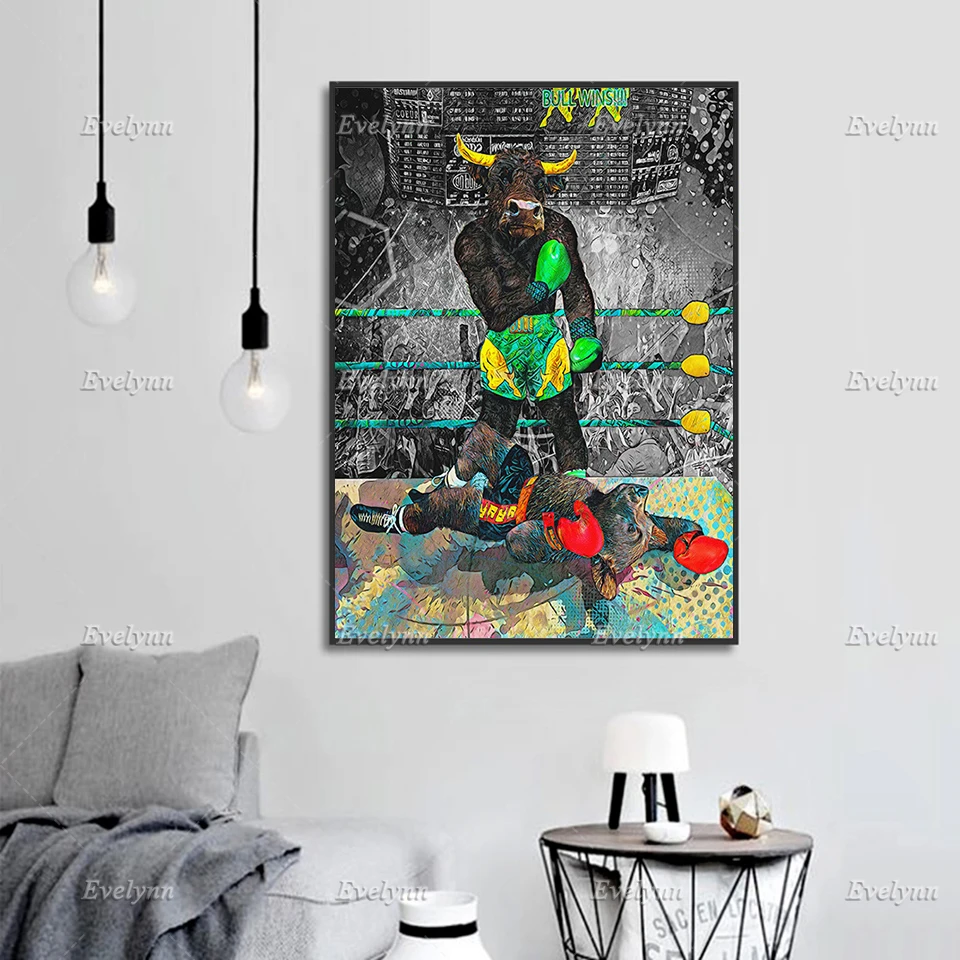 Настенное Изображение быка, боксерское искусство с быком, стоячим победителем над медведем, холст на рынке, художественное украшение для офиса, плавающая рамка