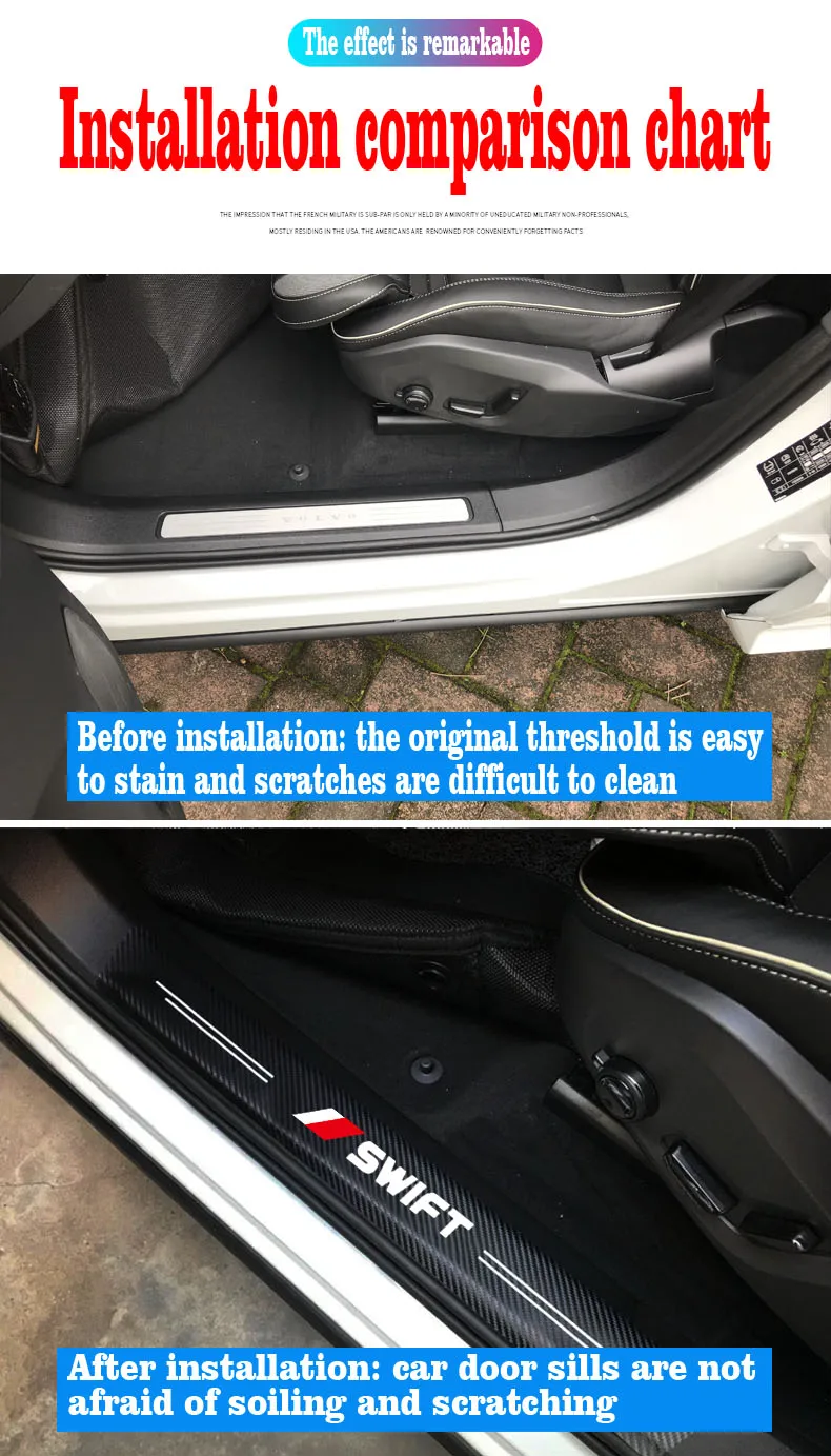 Автомобильная дверь наклейка для порога для Suzuki Swift Авто искусственная кожа углеродное волокно наклейка пороговое покрытие панель Step Protector Accessories