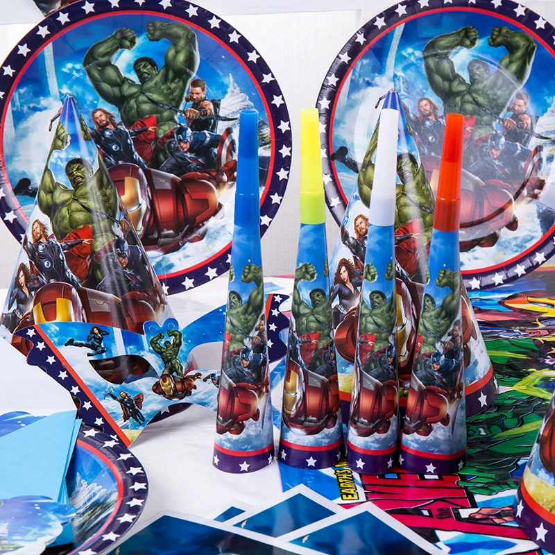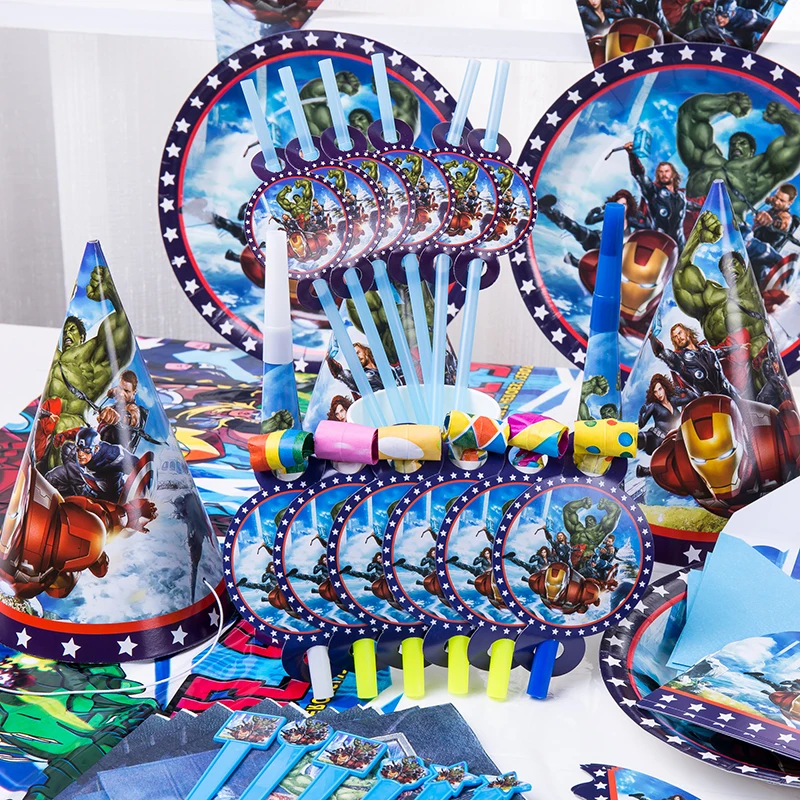 Disney с рисунком мстители от Marvel украшения набор одноразовой посуды чашка тарелка соломенная шляпа для маленьких мальчиков Детский День Рождения украшения набор