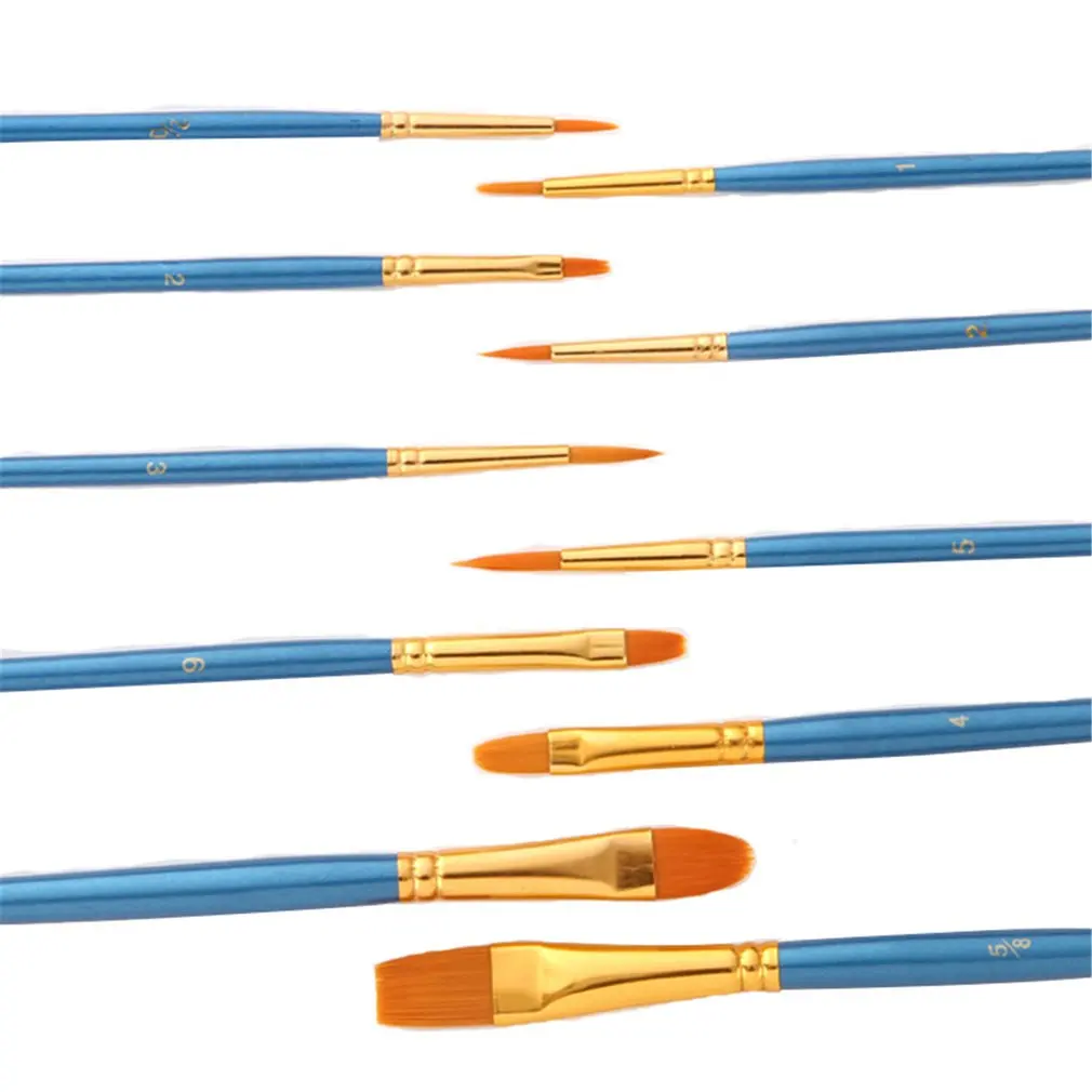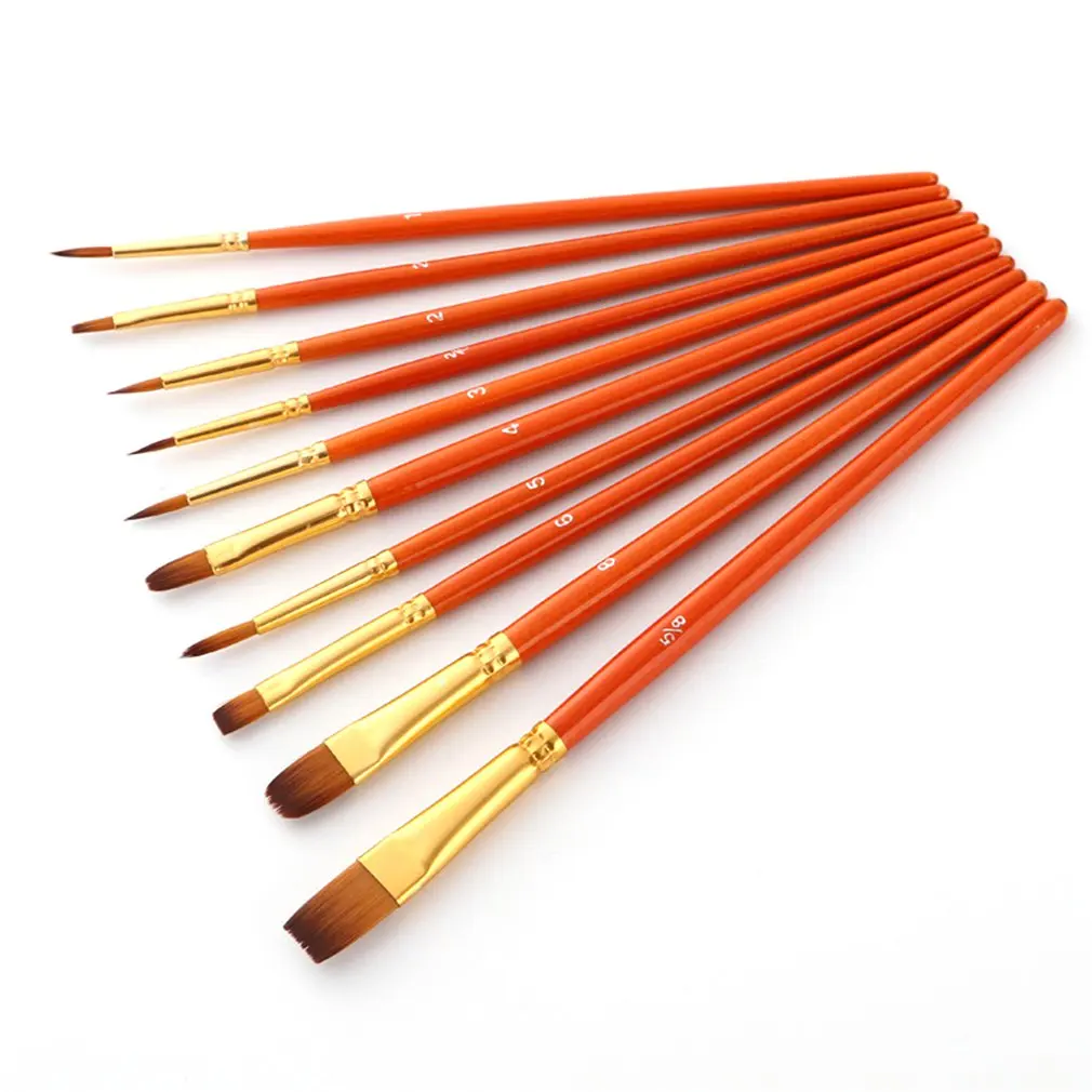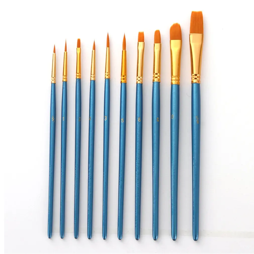 10 шт.компл. акварель гуашь Краски кисти разных Форма круглым заостренным кончиком набор нейлоновых волосяных Краски ing кисти комплект, принадлежности для живописи без коробки