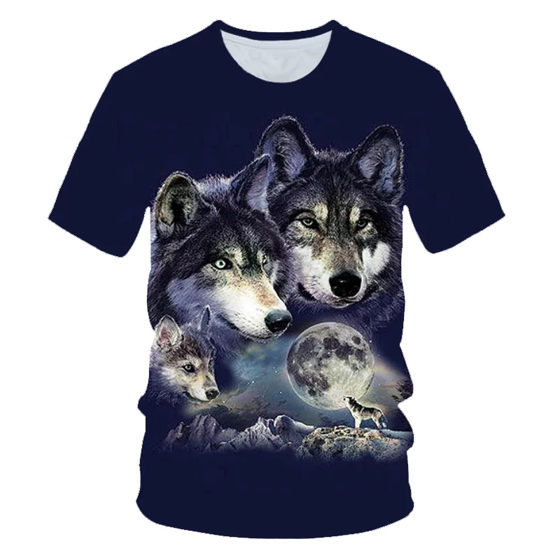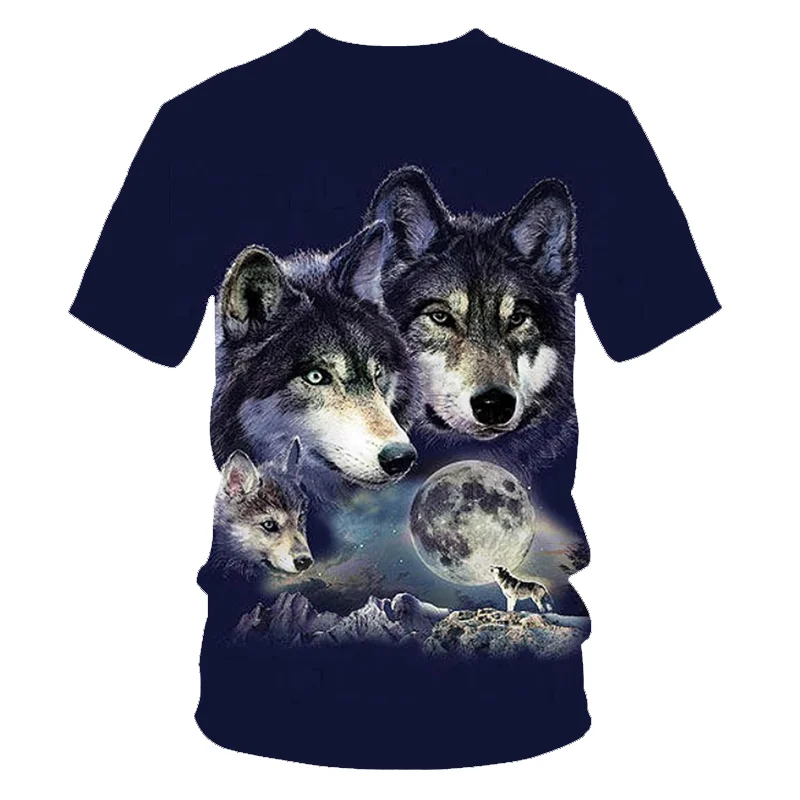 Мужская одежда, летняя футболка с 3D-принтом в стиле Харадзюку, с изображением волка, с коротким рукавом, 2021