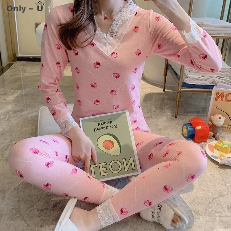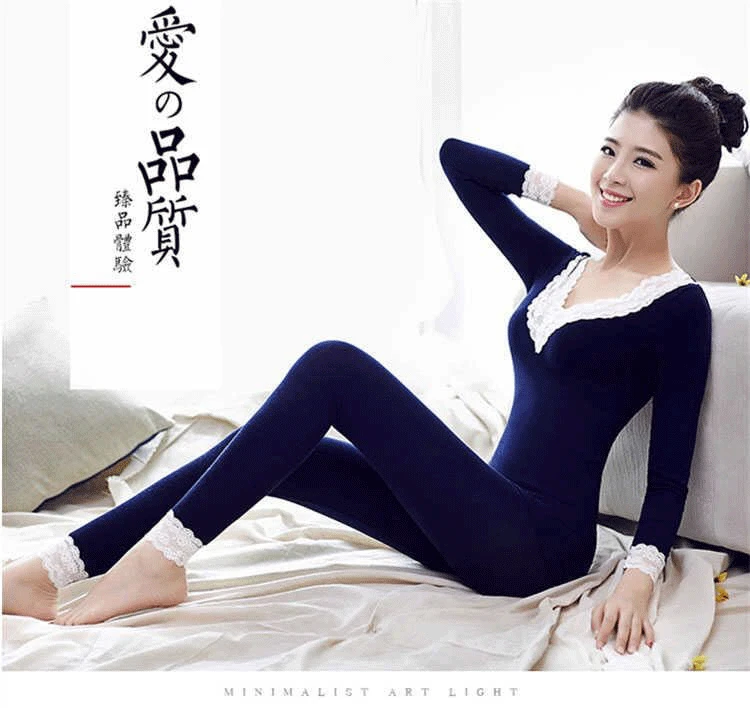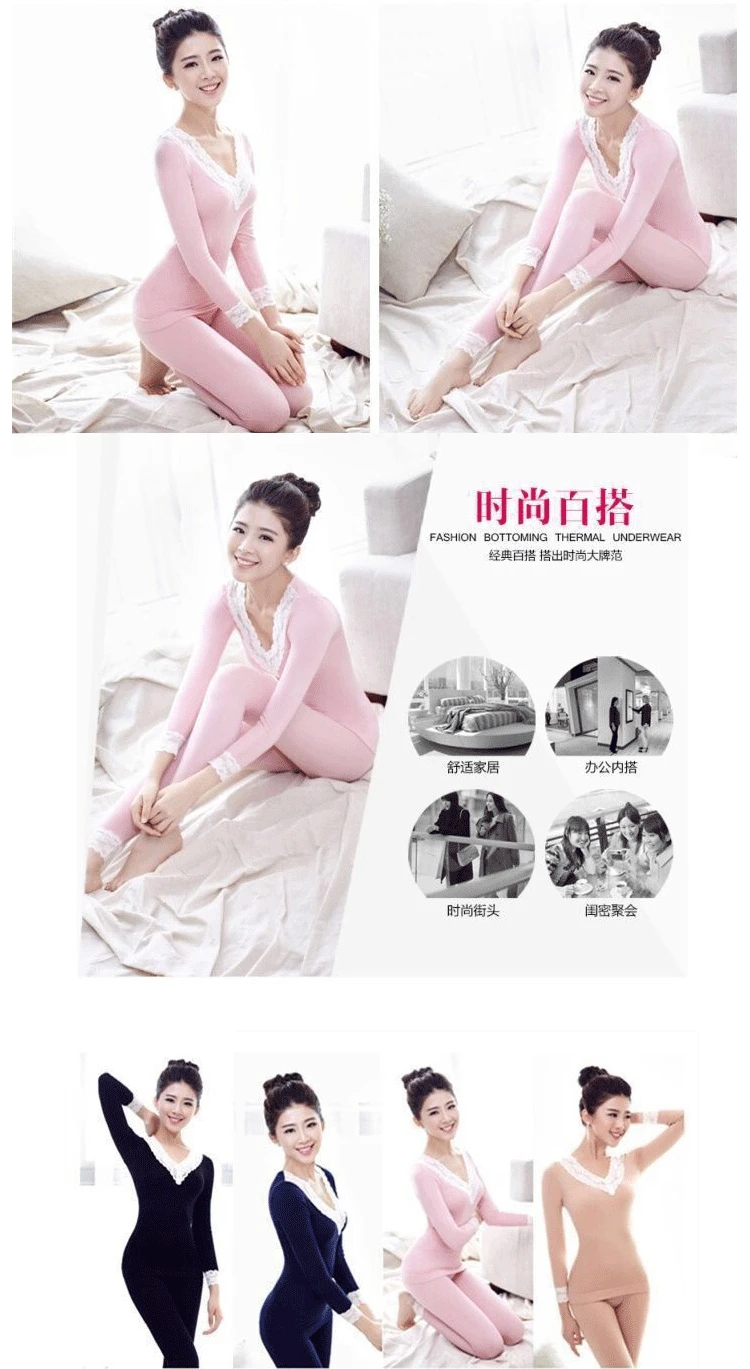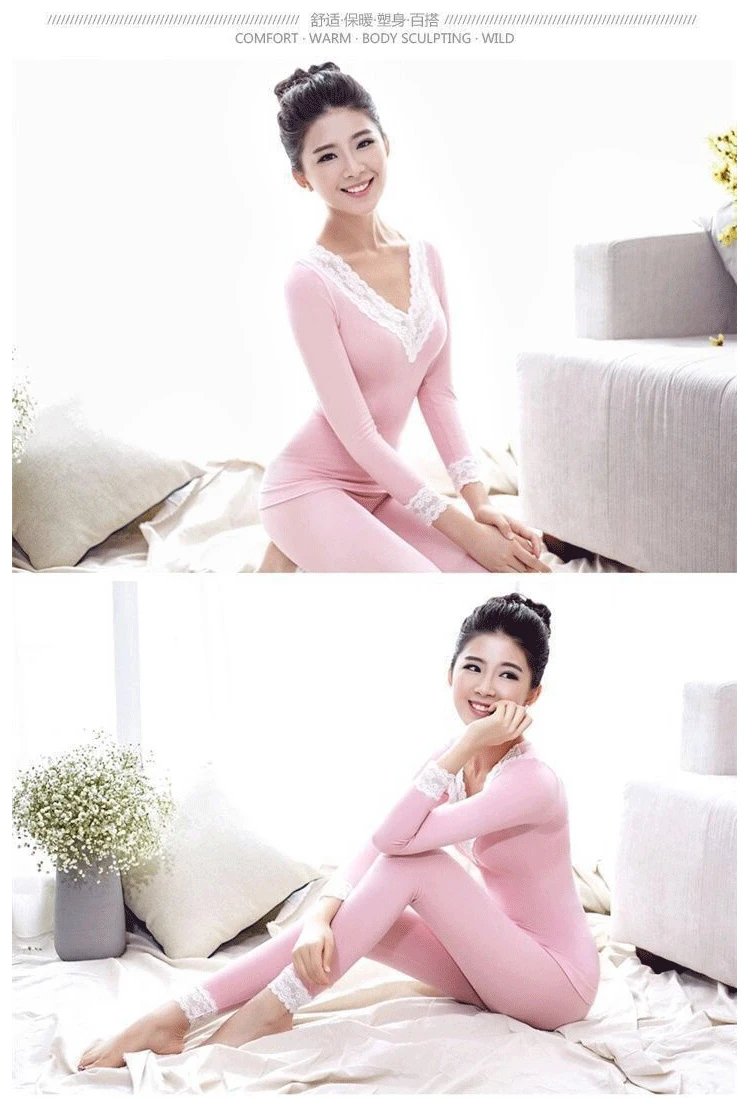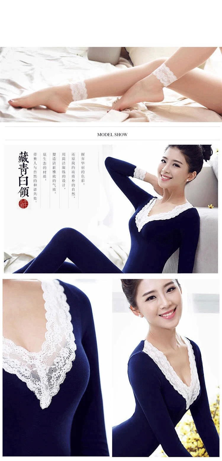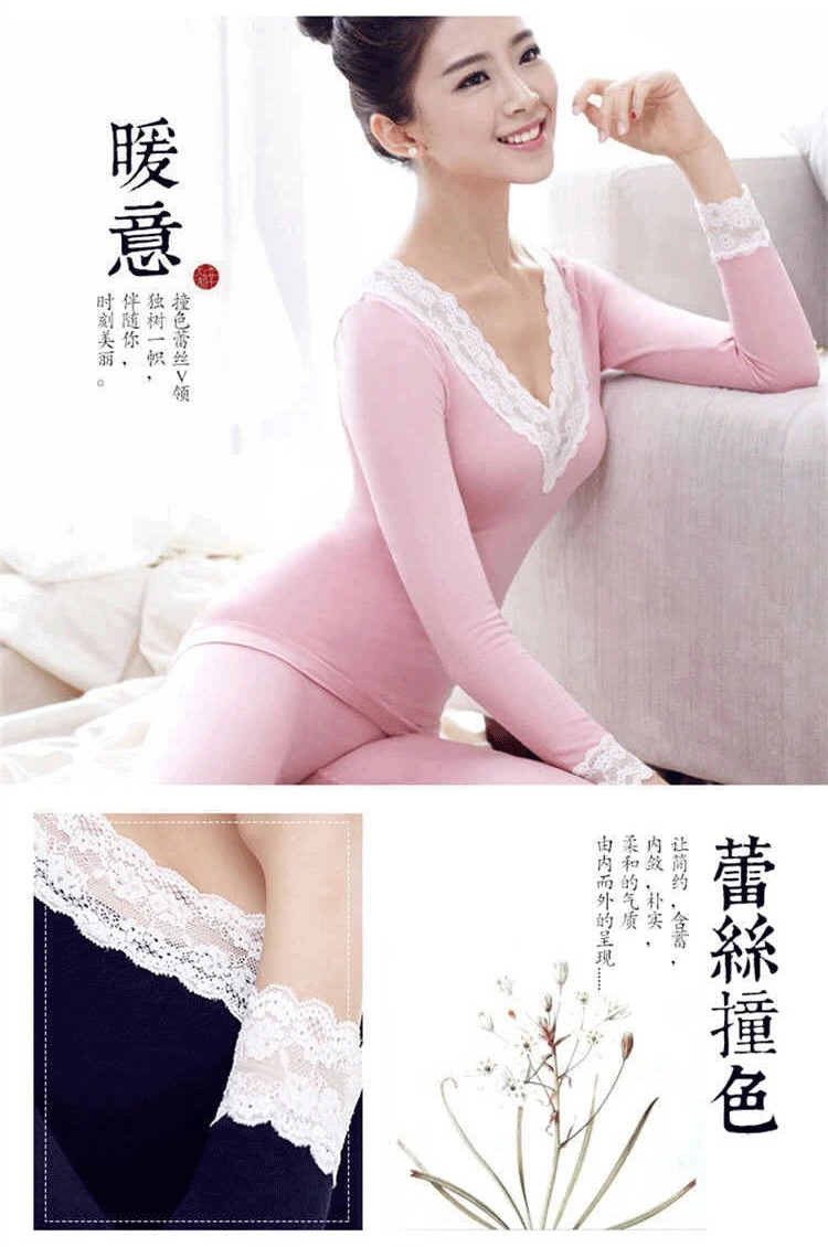 Комплект женского кружевного термобелья с V-образным вырезом, с дли...