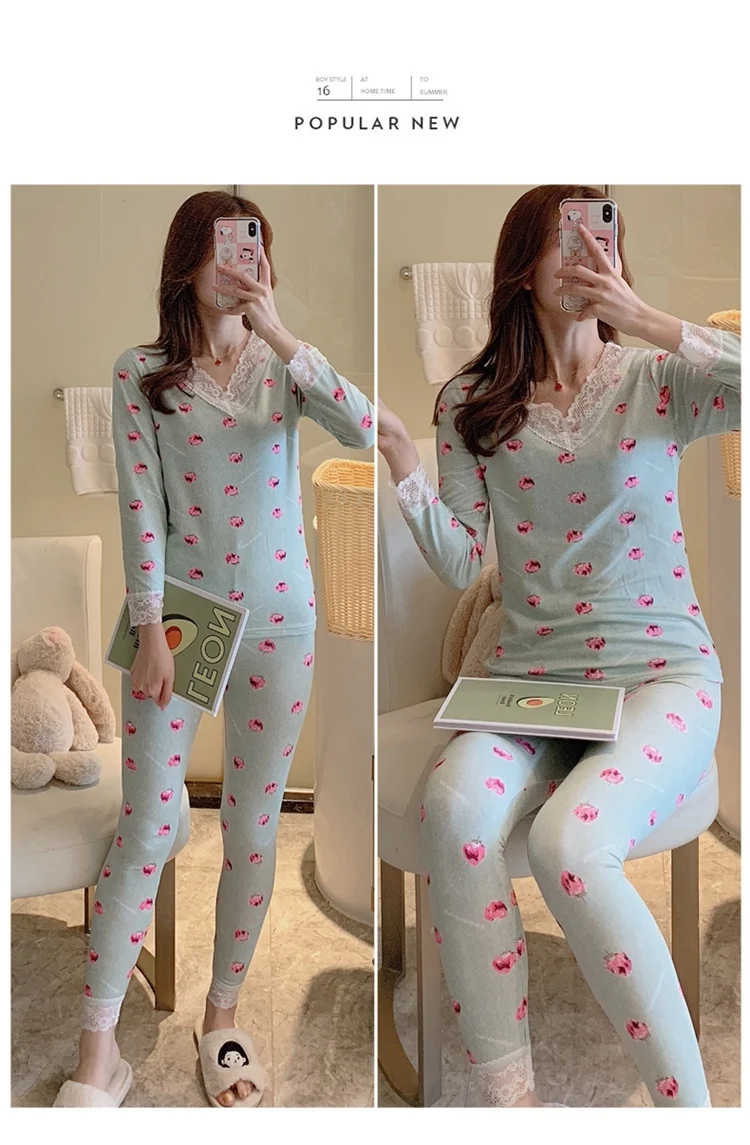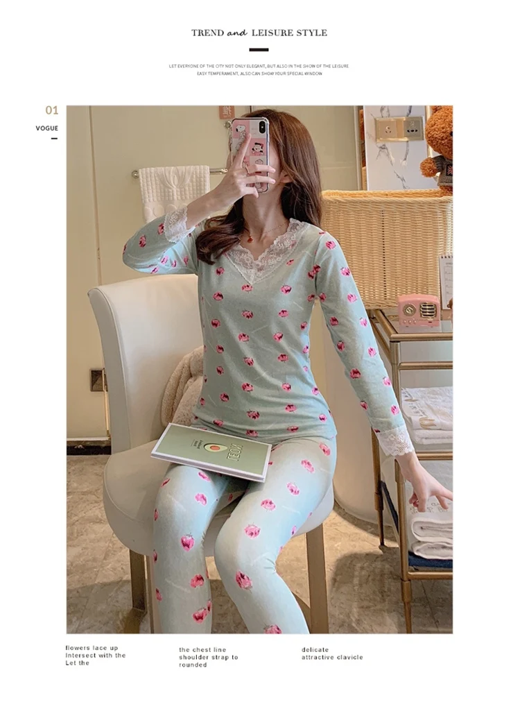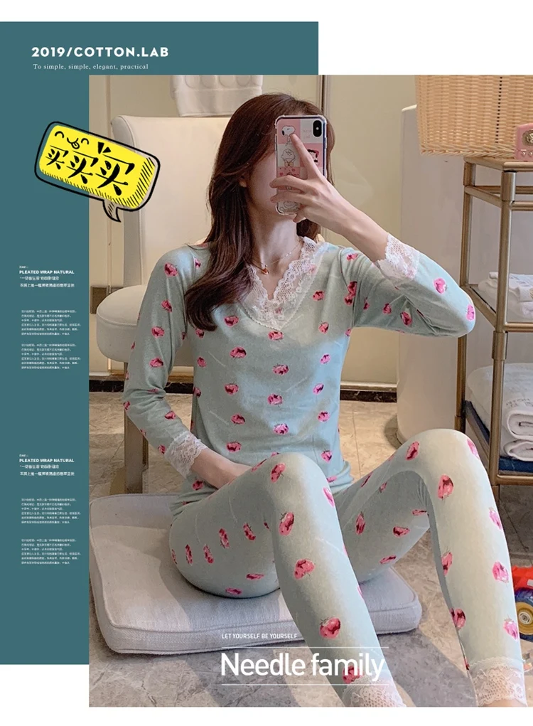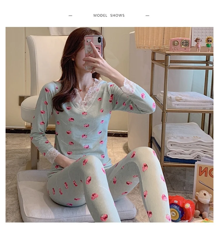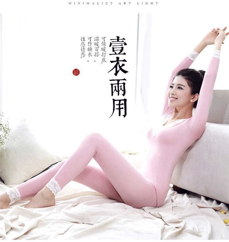Комплект женского кружевного термобелья, с V-образным вырезом и дли...