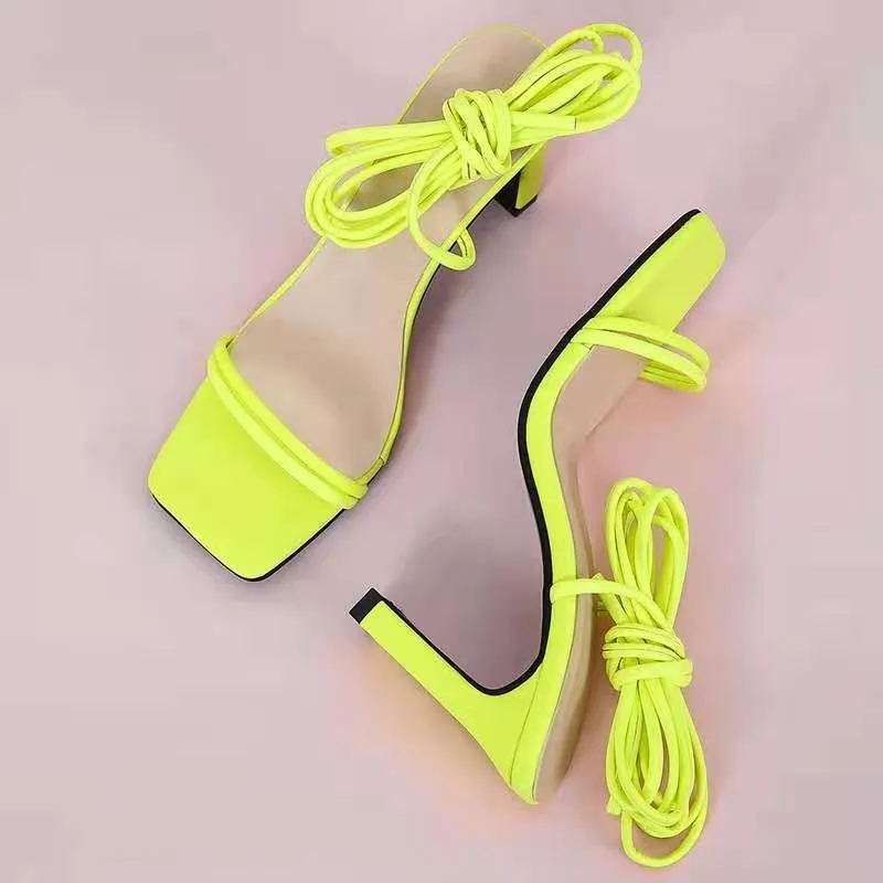 Сандалии женские летние зеленые на шнуровке, босоножки с перекрестными ремешками на щиколотке, туфли-лодочки с квадратным носком, обувь для вечеринки на высоком каблуке