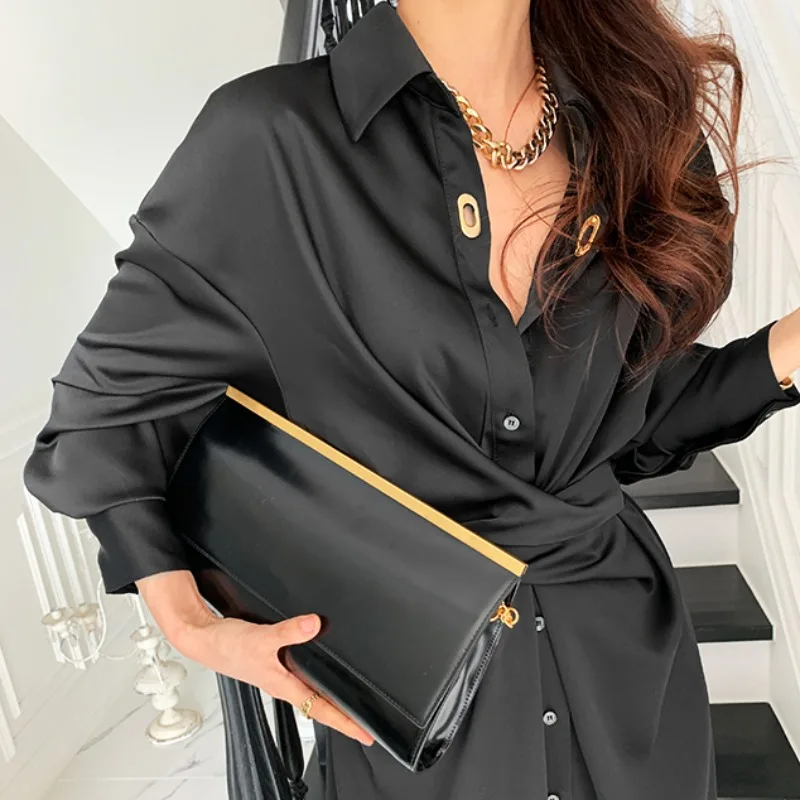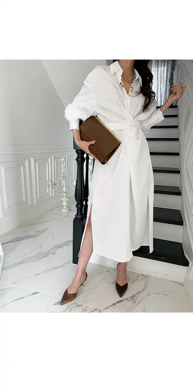 Новинка Весна 2021, женское шикарное шифоновое платье-рубашка средней длины в Корейском стиле во французском стиле