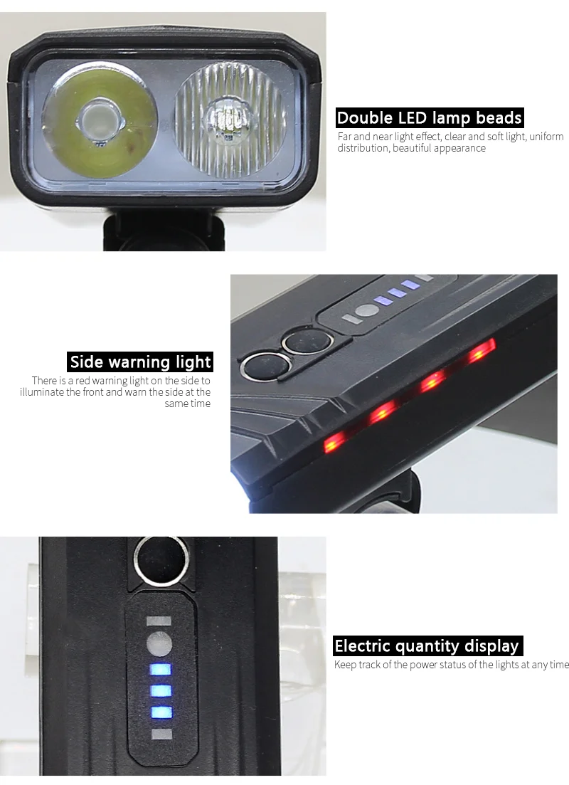 Велосипедный светильник с защитой от дождя и светодиодный кой через USB, 2400 мАч