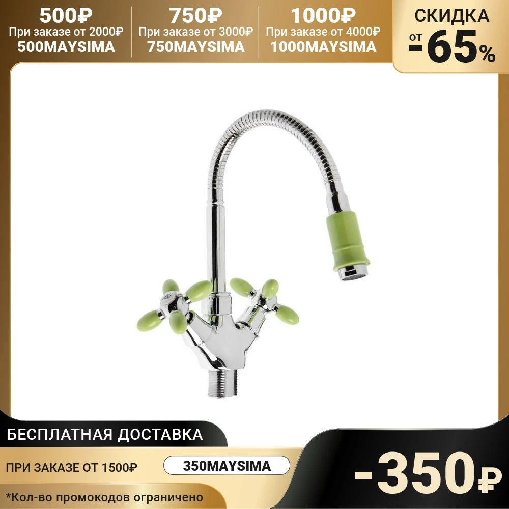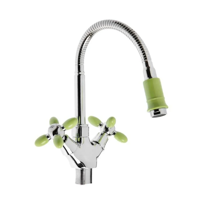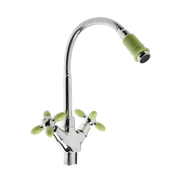 Cмеситель для кухни "Эверест" B58-071E, двухвентильный, высокий излив, на гайке, хром/желтый 6884875
