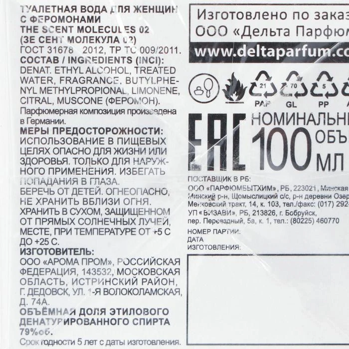 Туалетная вода женская с феромонами The Scent Molecules 02, 100 мл 6881799