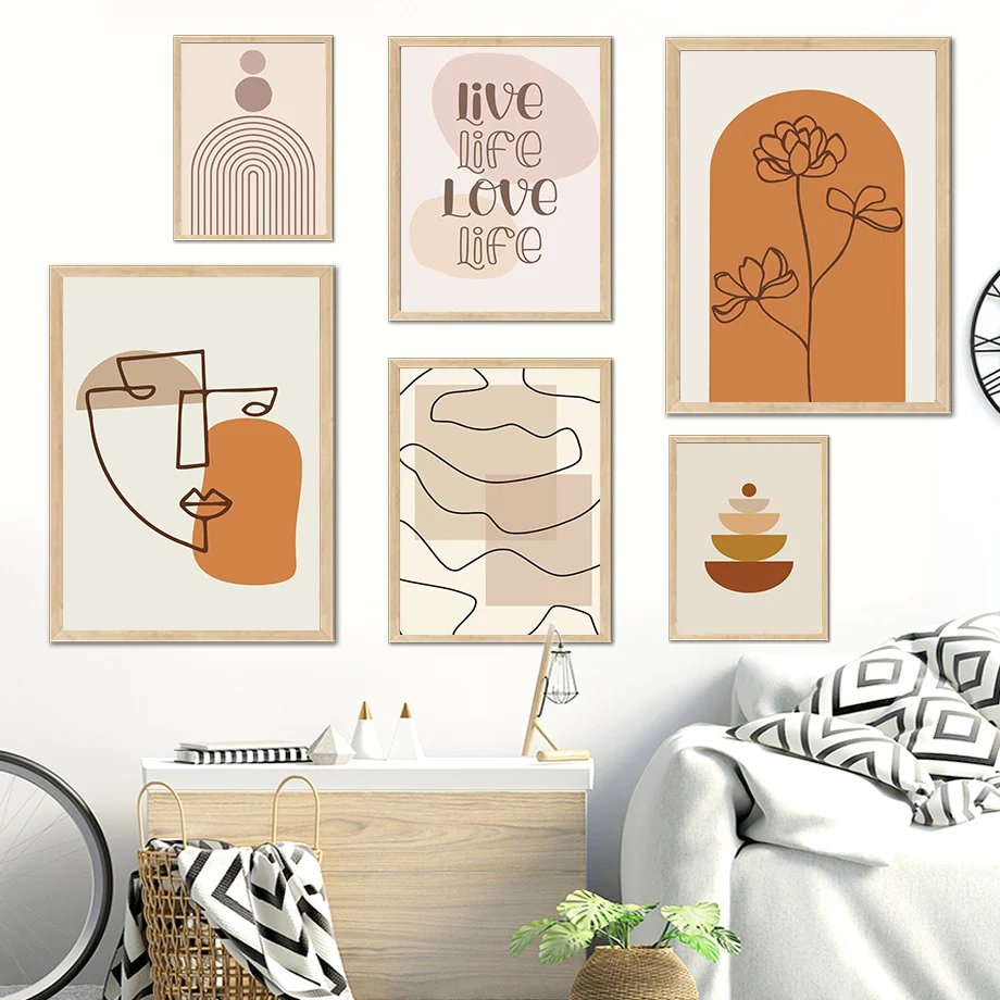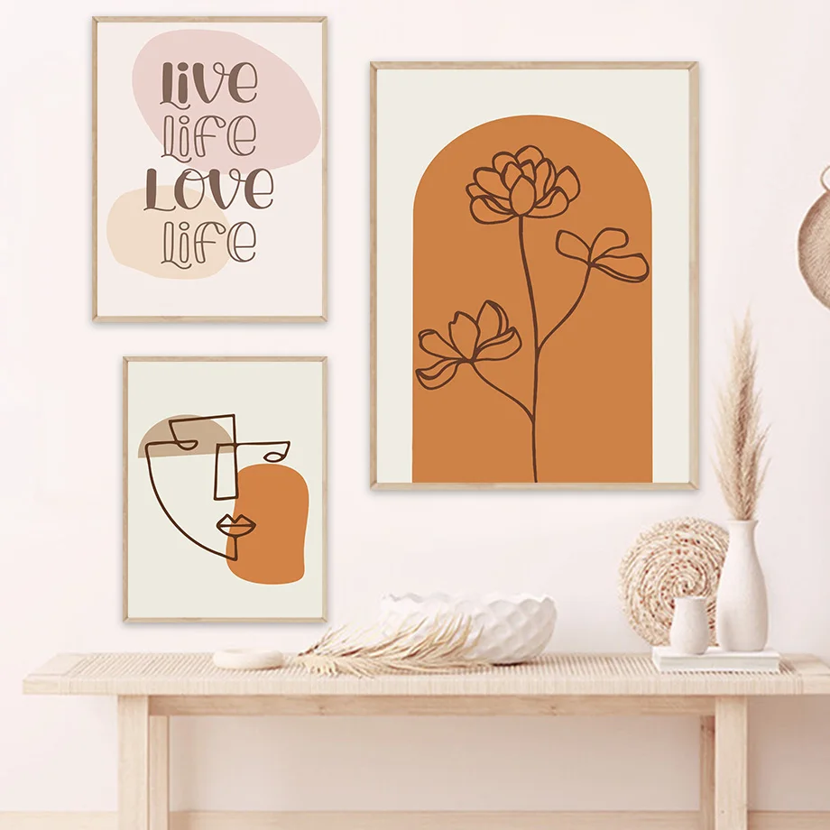 Настенная картина с абстрактным изображением, настенные постеры в скандинавском стиле для гостиной, бежевого цвета с изображением солнца, флоры, сердца, декор в стиле бохо