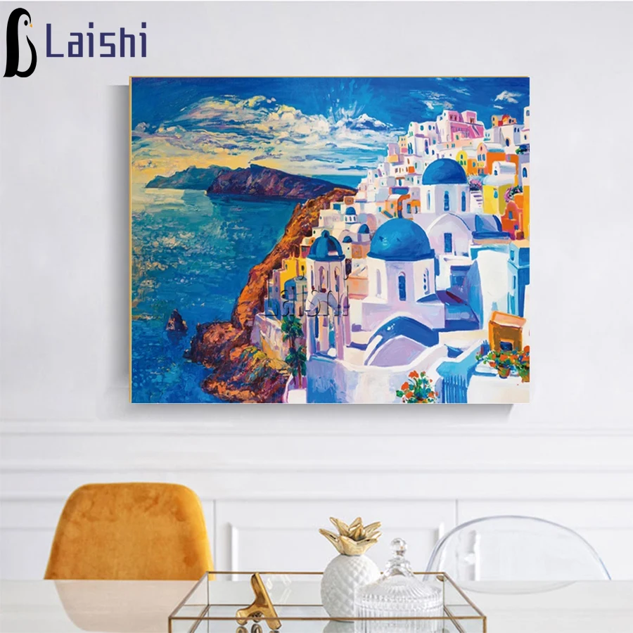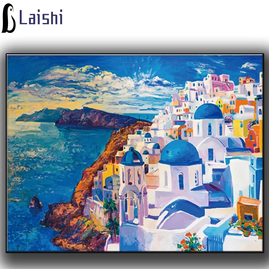5D алмазная живопись сделай сам, абстрактная греческая синяя Санторини, пейзаж, полная выкладка, круглая вышивка, мозаика, наборы для вышивки крестиком