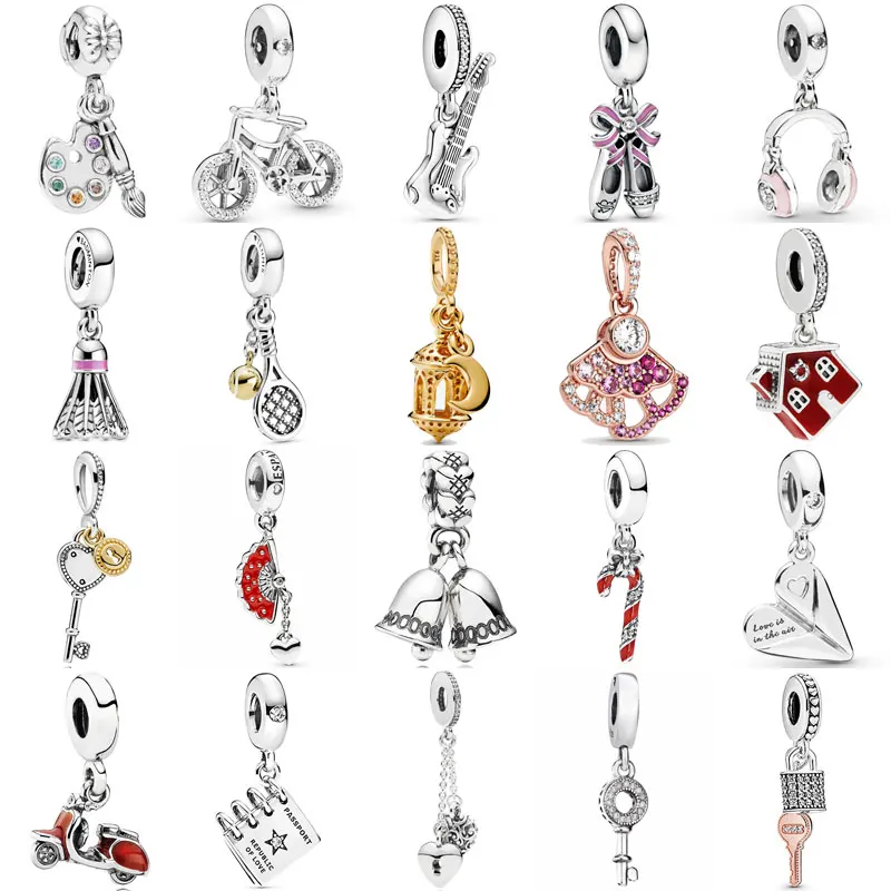 Модная блестящая велосипедная Палитра для художников, наушники, искусственные бусины, шармы из стерлингового серебра 925 пробы, подходят для браслета сделай сам, ювелирные изделия