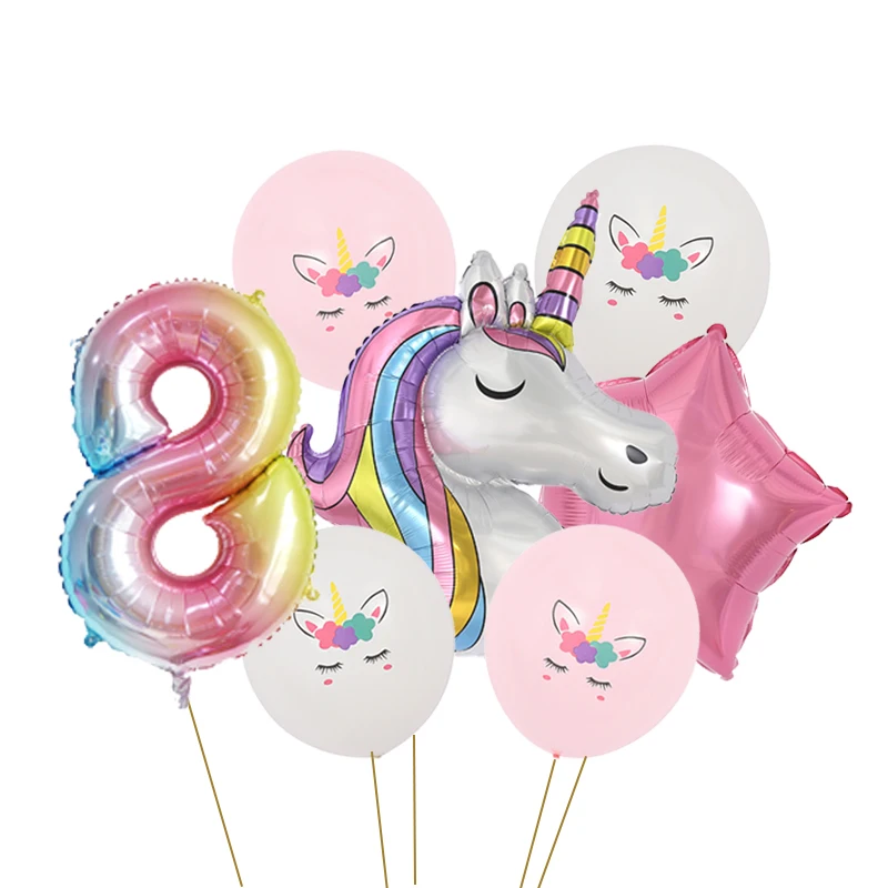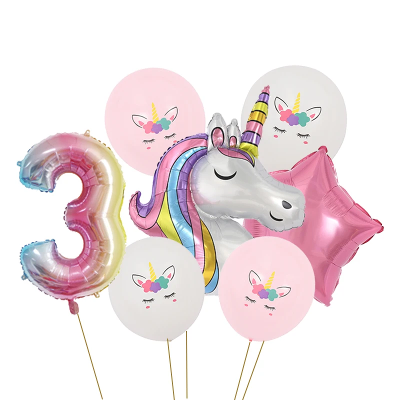7 шт. градиентной радужной расцветки в форме единорога вечерние Шар 32 дюймов номер День рождения вечерние украшения Дети Единорог вечерние свадебные воздушные шары