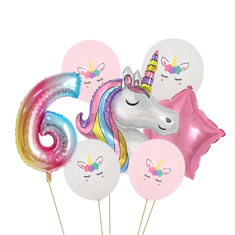 7 шт., вечерние шары с радужным градиентом и единорогом, 32 дюйма, вечерние шары для дня рождения, Детские вечерние шары с единорогом