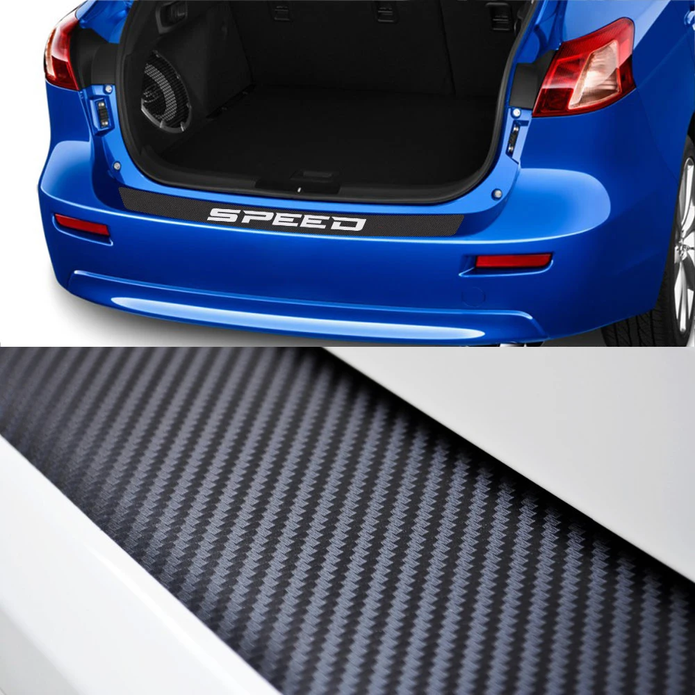 Скорость логотипа для BMW Honda Audi BENZ Volkswagen Toyota SUBARU LEXUS NISSAN FORD PORSCHE TESLA, Автомобильный задний бампер, защита от нагрузки на края, защита, углеродные волоконные наклейки