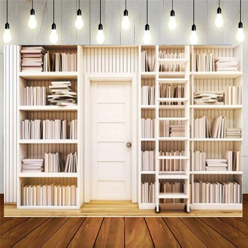 Фон для студийной фотосъемки с изображением офисной книжной полки библиотеки