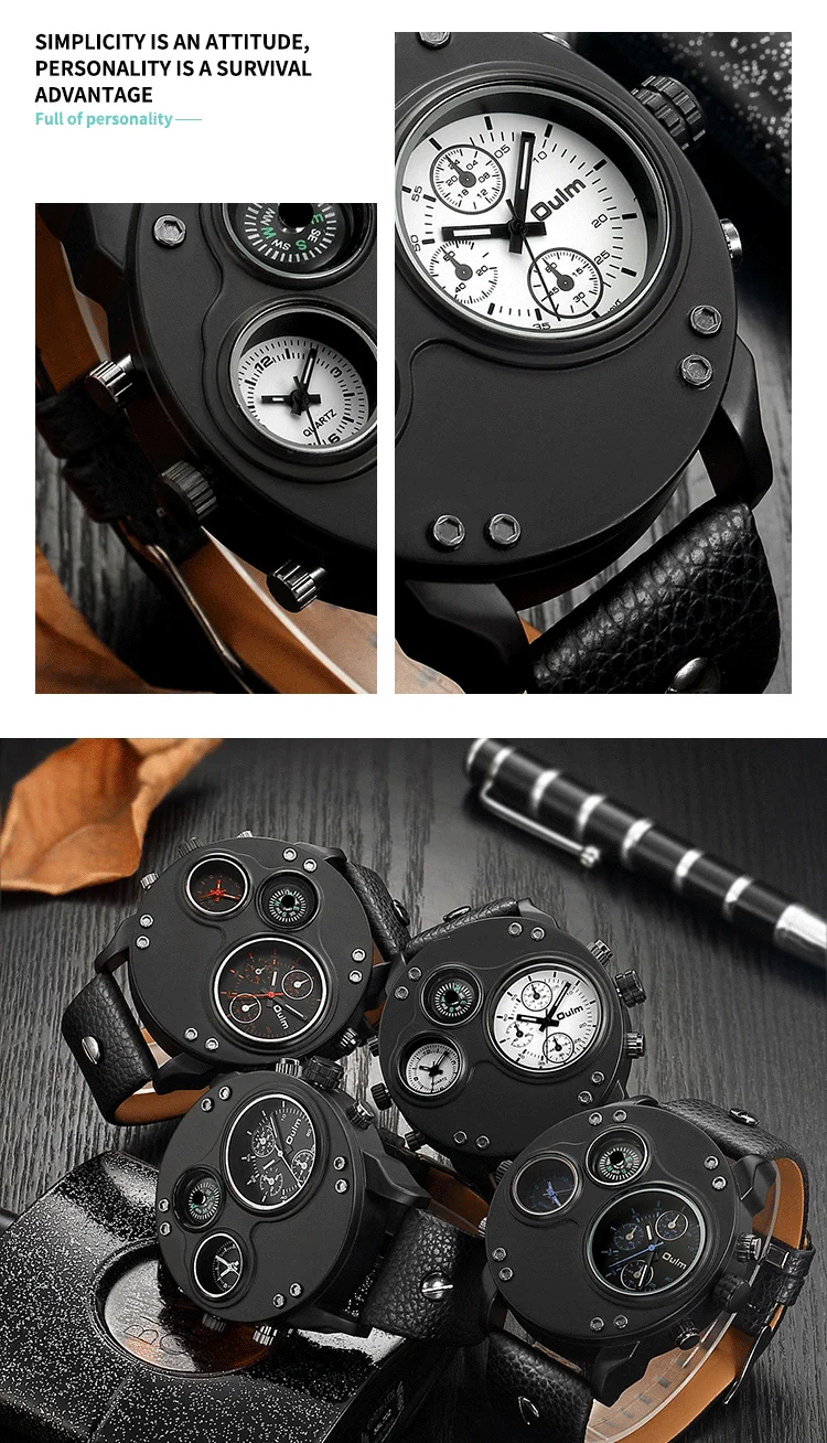 Часы Oulm Мужские кварцевые с компасом, с двумя часовыми поясами