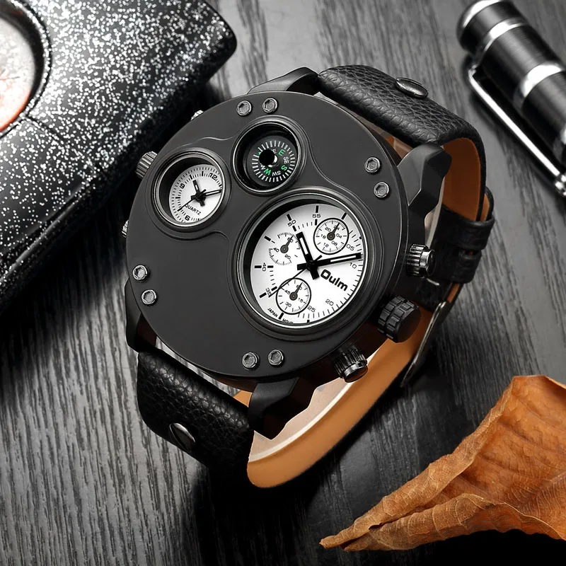 Мужские наручные часы с компасом, двойной часовой пояс, большой циферблат, светящийся кожаный ремешок, металлическая пряжка, индивидуальная мода, Relogio