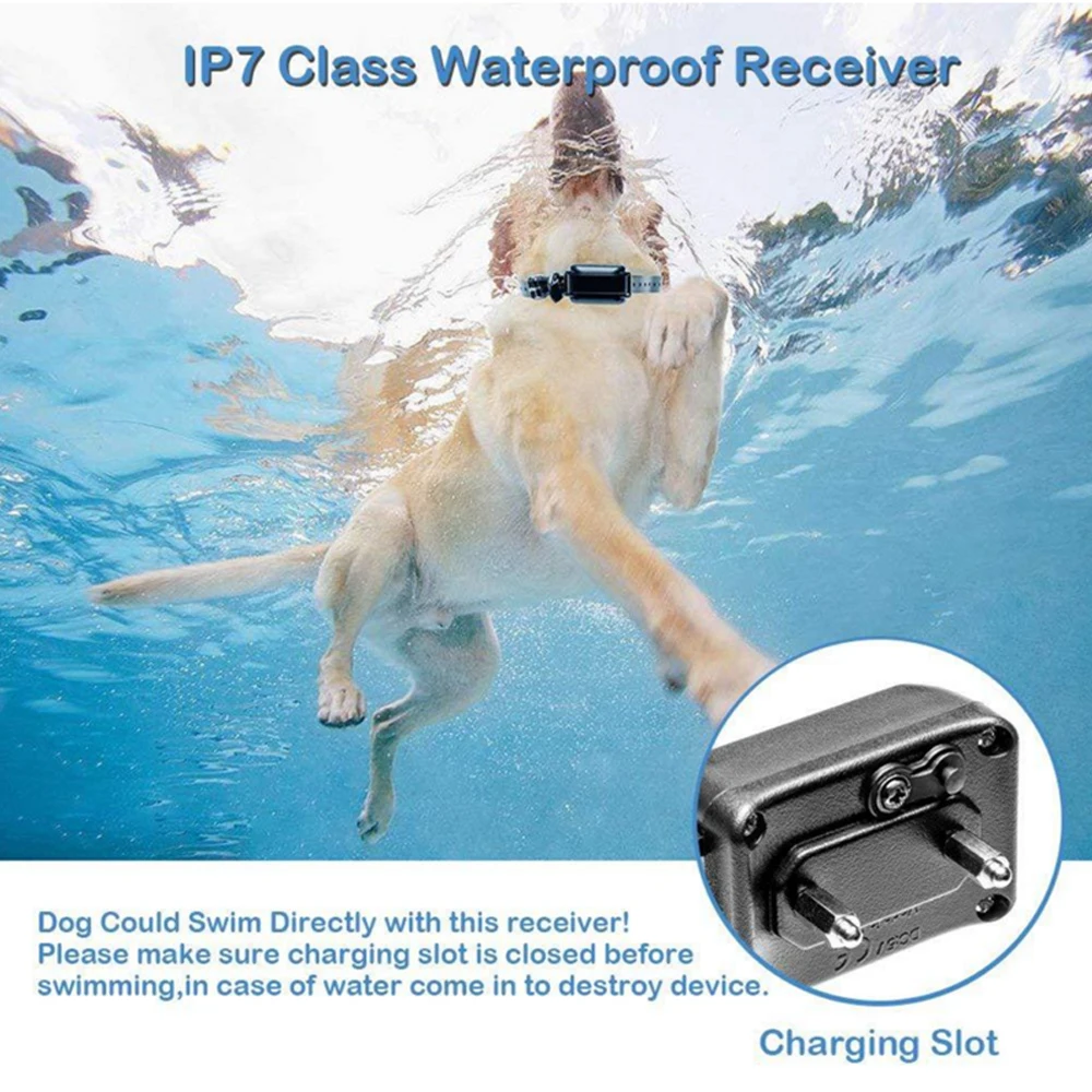 Водонепроницаемый:Тренировочный ошейник для собак, который можно использовать в сырую погоду или в водных играх, но не рекомендуется, когда собака плавает.