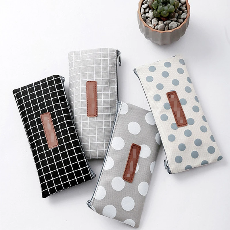 Кавайная простая сетчатая тканевая сумка в горошек для карандашей, органайзер для хранения канцелярских принадлежностей, чехол для карандашей, школьные принадлежности, пенал