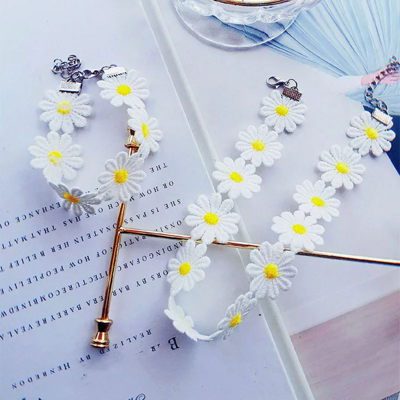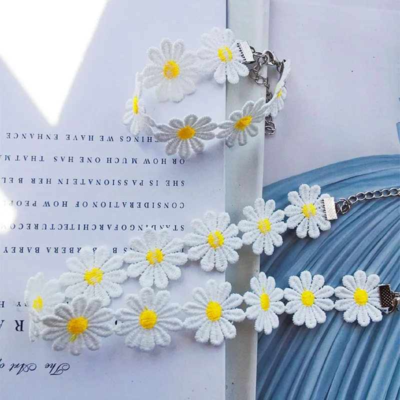Элегантные кружевные ожерелья с маргаритками для женщин, эстетический чокер, женский браслет с подвесками для путешествий, Модная бижутерия, аксессуары для женщин