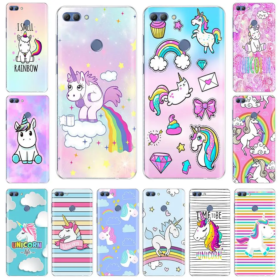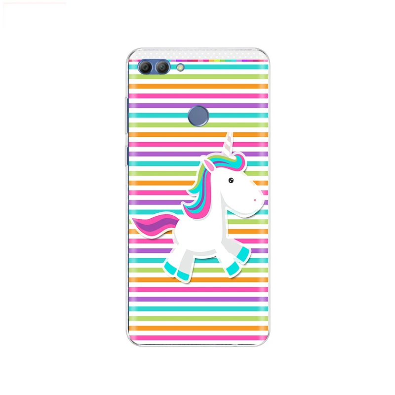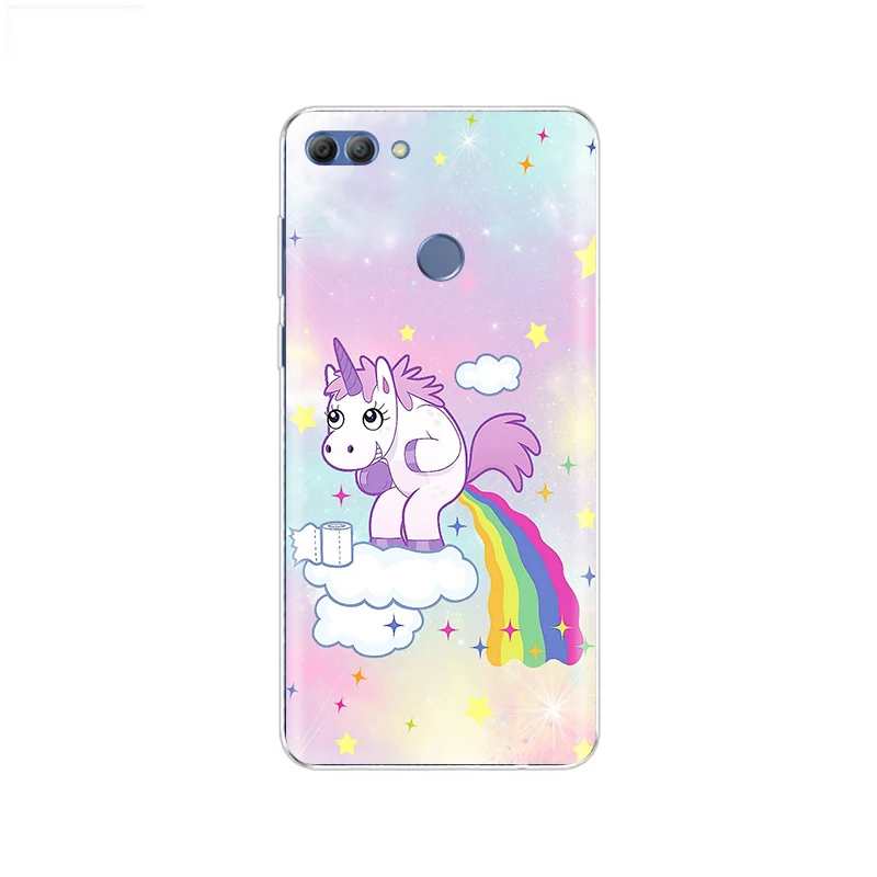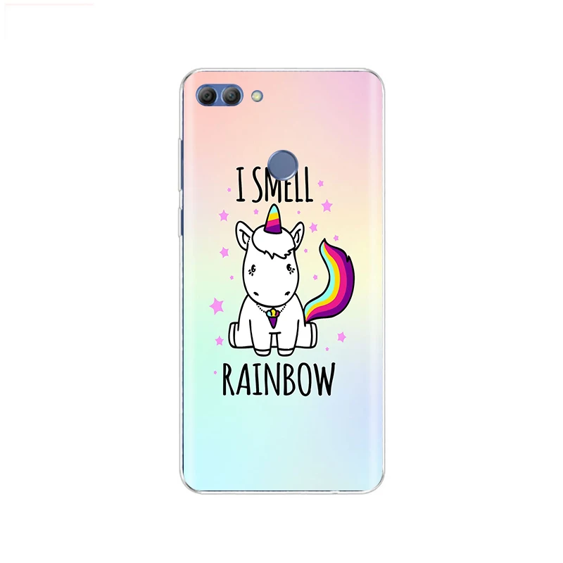 Чехол для телефона Huawei p smart 2018 Мягкий ТПУ силиконовый милый Радужный Единорог задняя крышка Enjoy 7S Чехол p smart Full 360 Защитный