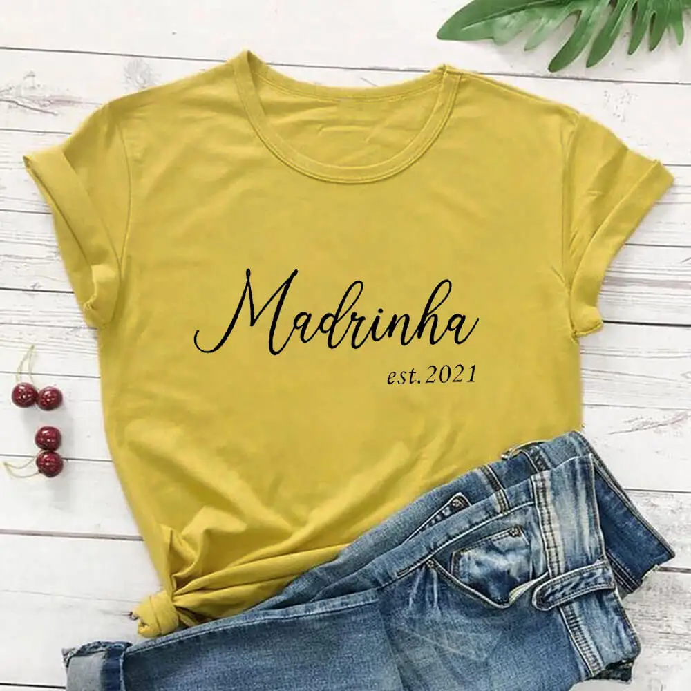 Португальский Madrinha Est 2021 100% хлопчатобумажная женская футболка крестной летняя повседневная одежда с О-образным вырезом, пуловеры с короткими рукавами Топ Португалия подарки