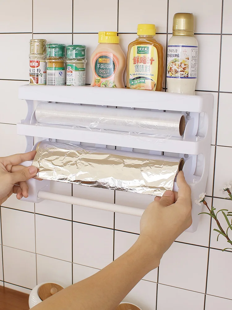 Кухонный держатель для полотенец 4 в 1, бумага для органайзера, держатель для пищевой пленки, для нарезки соуса, бутылок, резак для оловянной фольги, органайзер для кухни