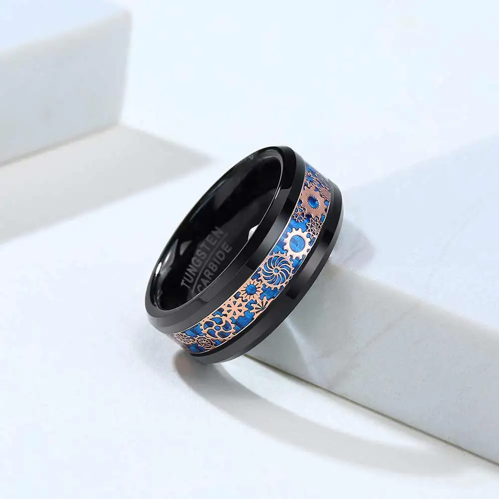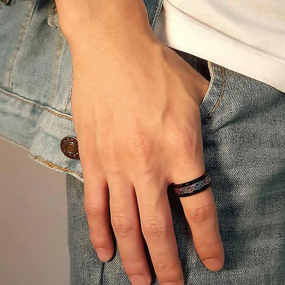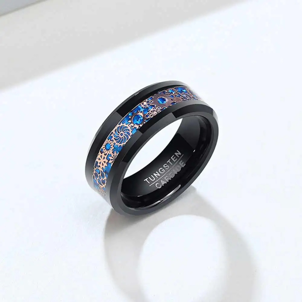 Кольца вольфрамовые унисекс, классические черные, 8 мм, с инкрустац...