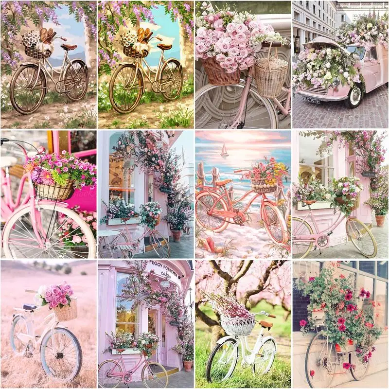 CHENISTORY 60x75 см рамки алмазов картина по номерам цветы велосипед акриловая ручная роспись маслом на холсте Рисунок Раскраска по номерам Diy Цифровая живопись подарок