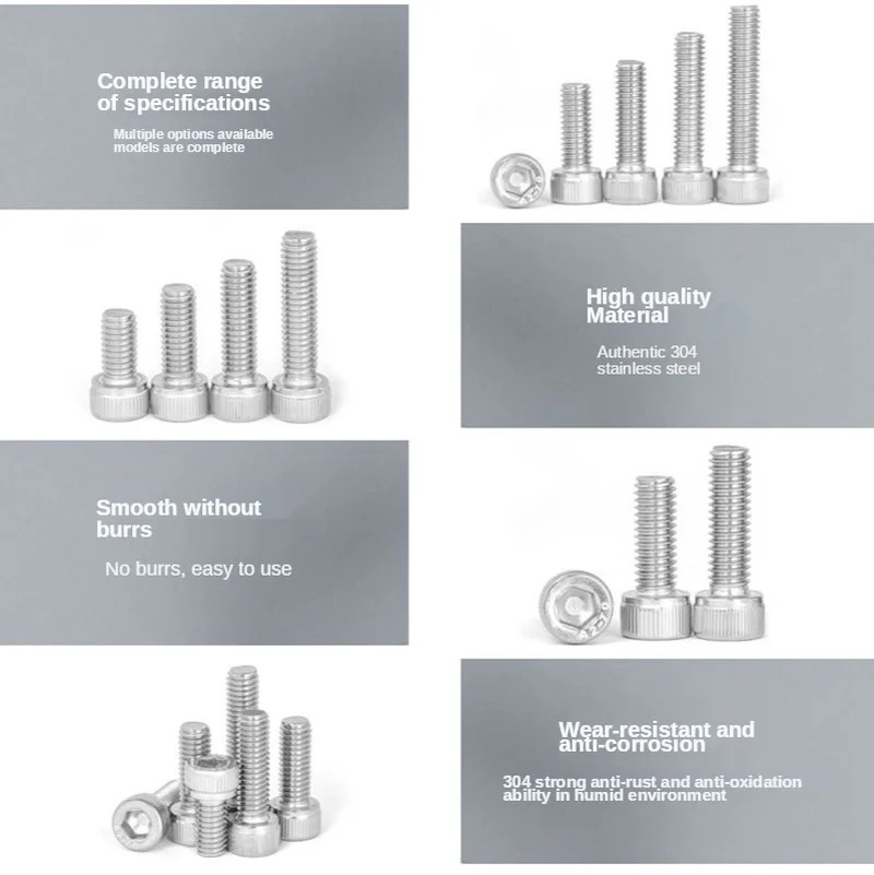 Нержавеющаясталь винты 304 болты M3 M4 M5 M6 M8 M10 M12 головкой шайба болт Metic гаек и болтов ассортимент винт с пружинным кольцом