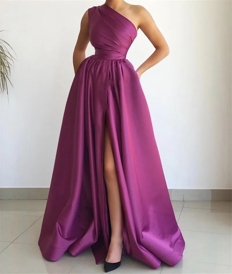 Атласное платье-трапеция Vinca, фиолетовое платье на одно плечо, с Боковым Разрезом, со складками, на спине, на молнии