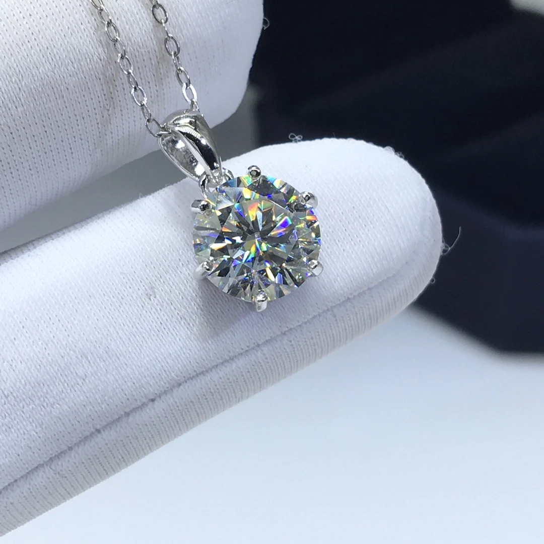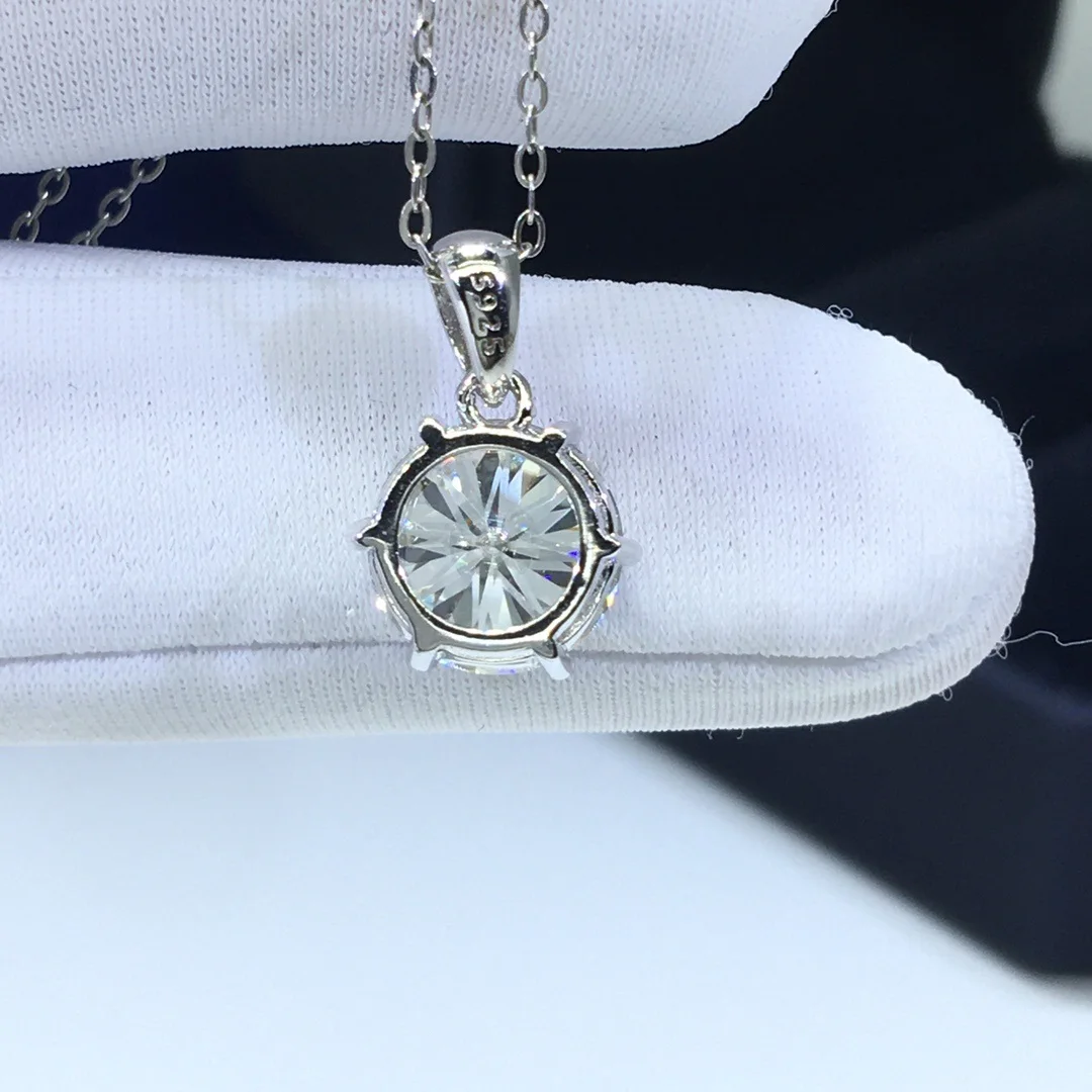 С покрытием 18-ти каратным белым золотом, 2-3 карат круглой бриллиантовой огранки тест последние D Цвет Муассанит кулон ожерелье серебро цепочка с драгоценными камнями