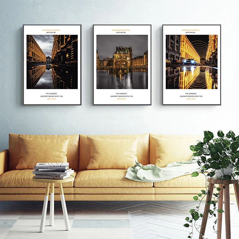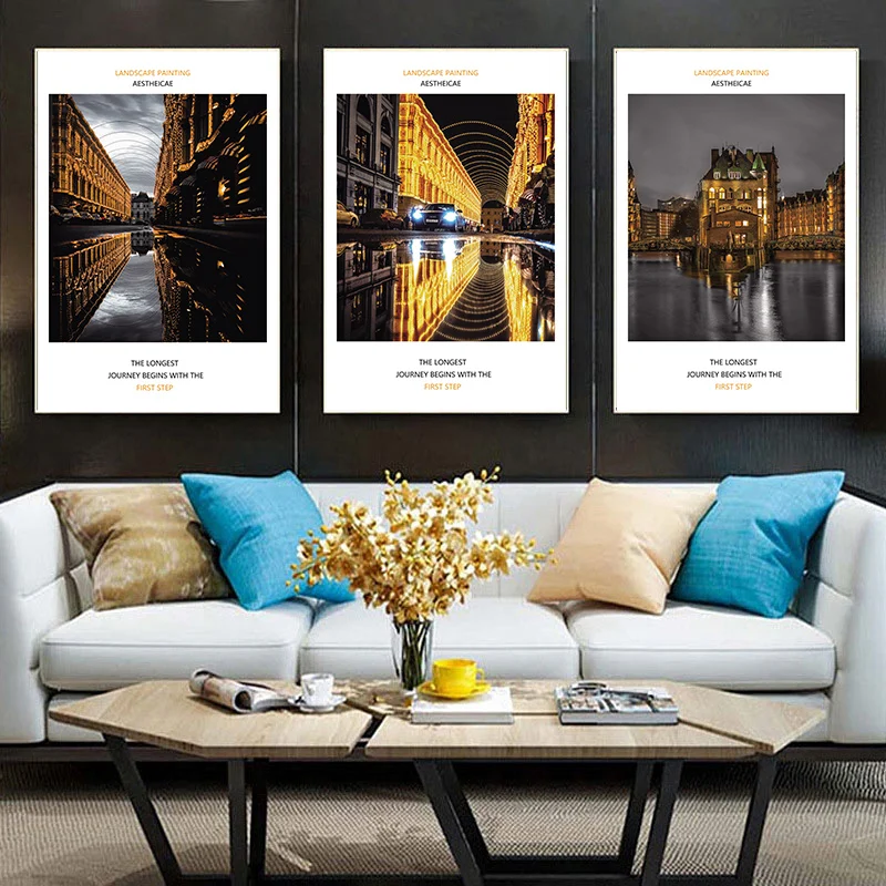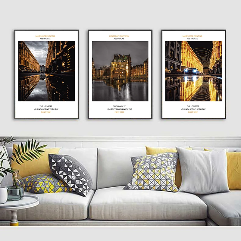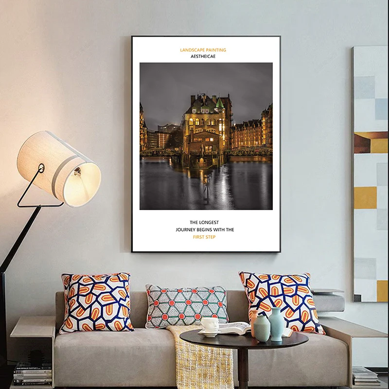 Современная Картина на холсте, потрясающая городская строительство, пейзаж, Скандинавская картина, принты пейзажа, настенный художественный плакат, домашний декор