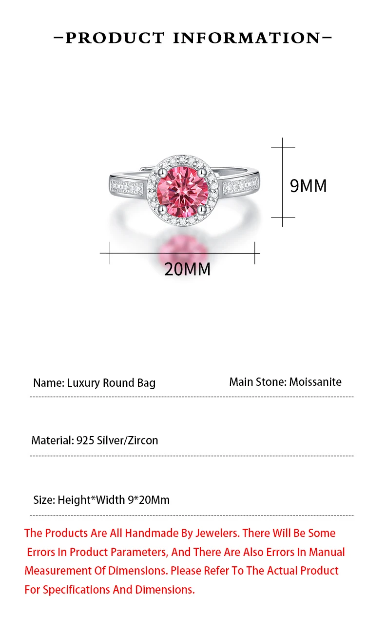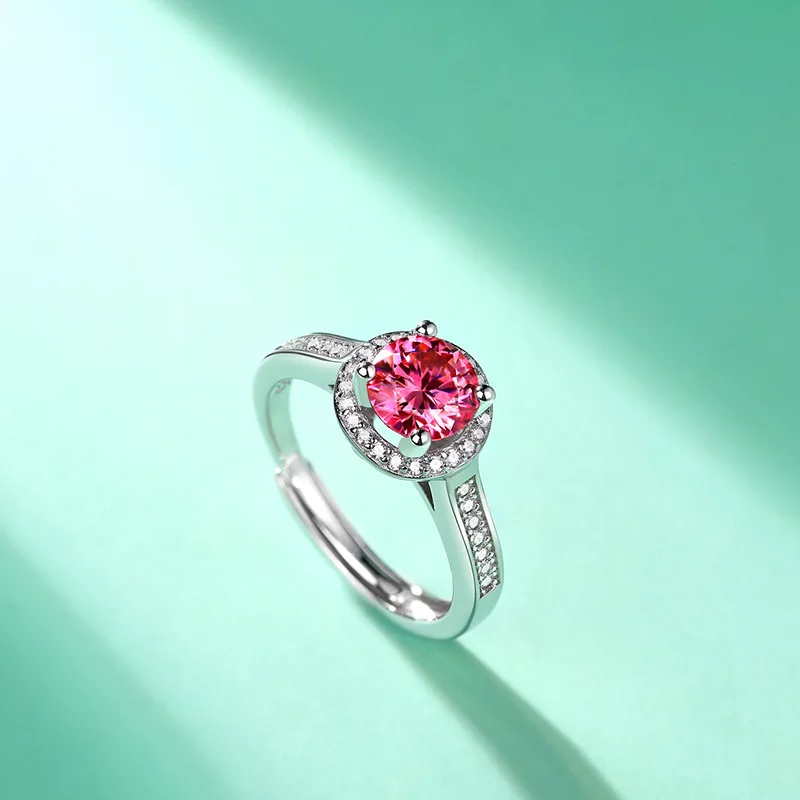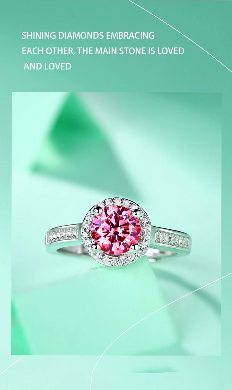 Розовый Муассанит кольцо 925 стерлингового серебра 1Ct Регулируемый Открытие Кольца для женщин Свадебная вечеринка любовь столкнуться с ювелирные изделия