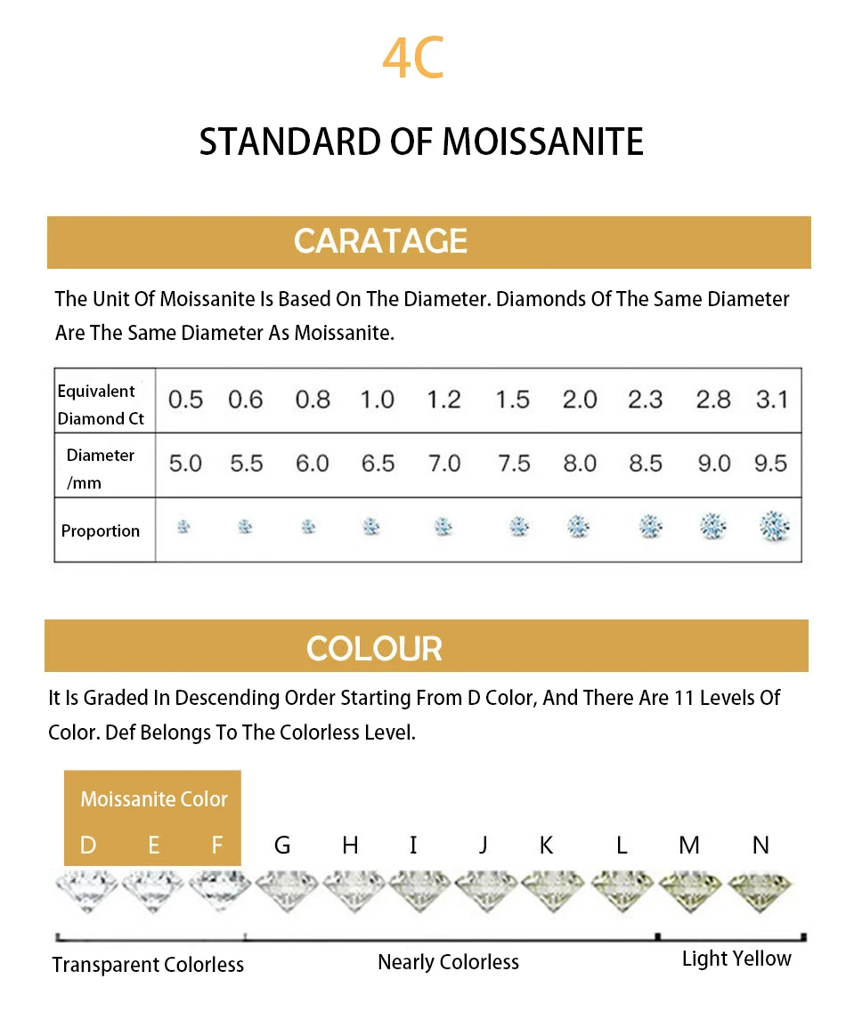 Синтетический моиссанит, также известный как синтетический моиссанит, синтетический моиссанит (химический состав Sic), имеет дисперсию на 0,104 больше, чем у алмазов (0,044), показатель преломления 2,65-2,69 (алмаз 2,42), и имеет такой же Алмазный Блеск, как алмаз. «Цвет огня» сильнее и ближе к бриллиантам, чем любые имитации в прошлом.
