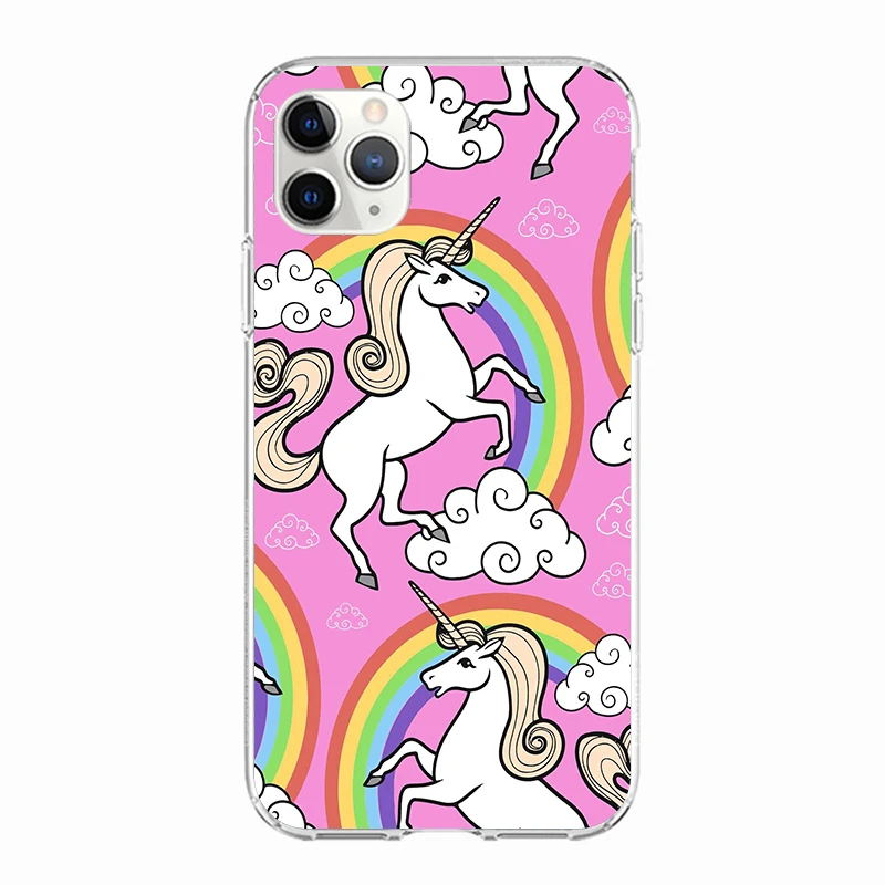 Силиконовый чехол для iPhone 12 Pro MAX 13 Mini, мягкий ТПУ чехол с изображением радужного единорога для Apple iPhone 11Pro, полноразмерный, 360 Защитный