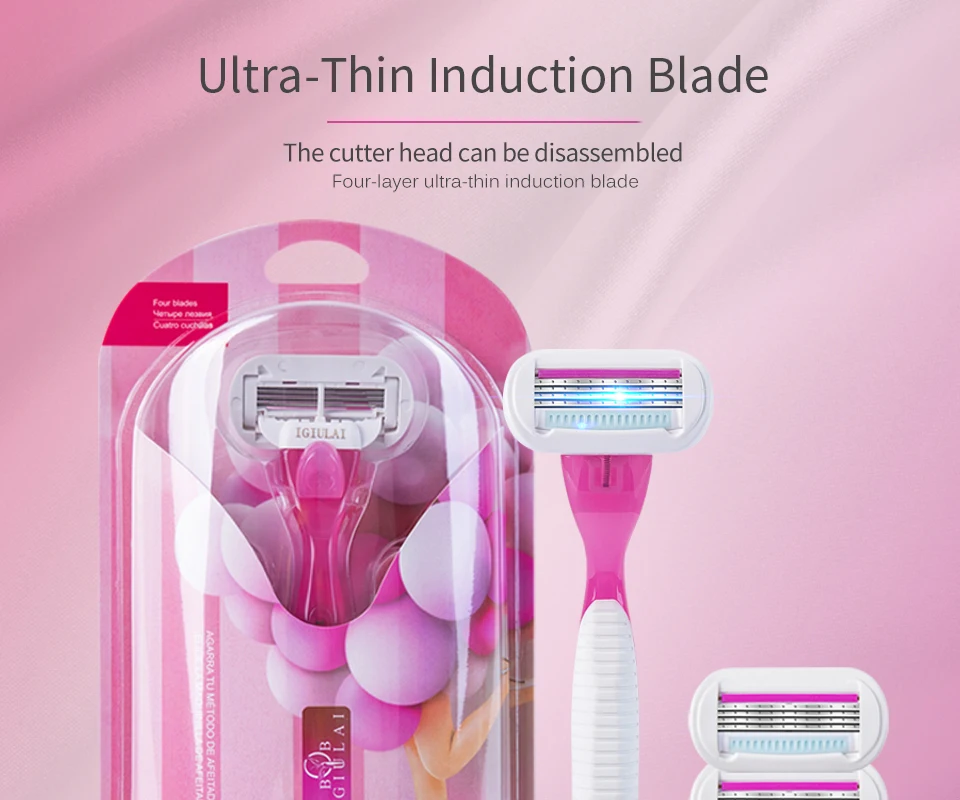 Лидер продаж, 1 ручка и 1 Безопасное лезвие, сменные женские лезвия, ручная бритва с лезвиями из нержавеющей стали, бритва с 4 лезвиями