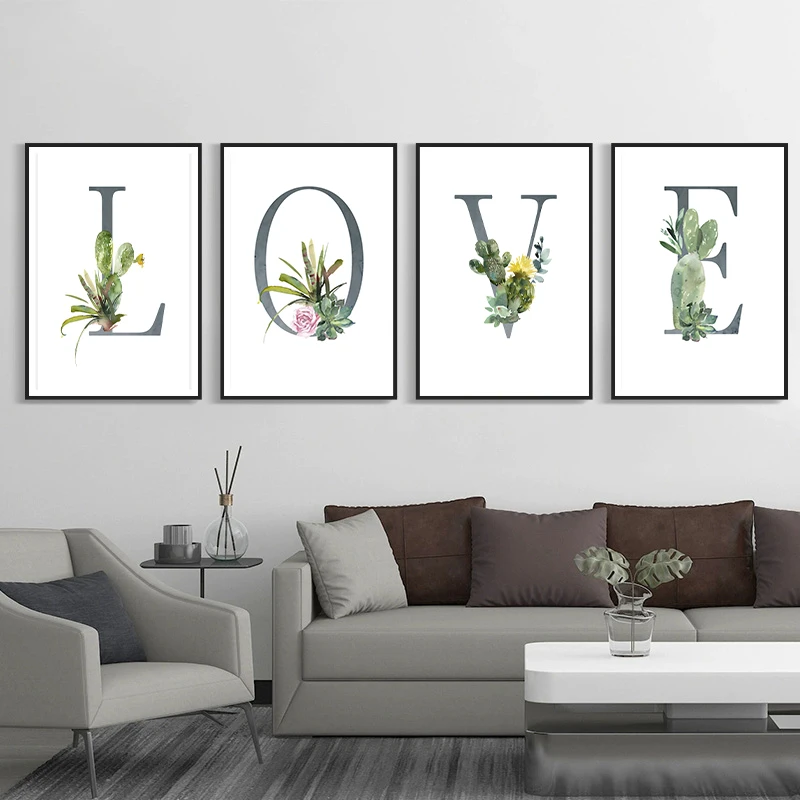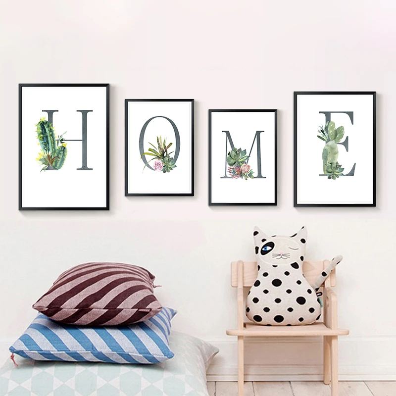 26 букв английского алфавита Ins зеленого цвета с цветочным рисунком детские живопись на холсте, мультфильмы печать плакатов настенные картины для спальни домашний декор