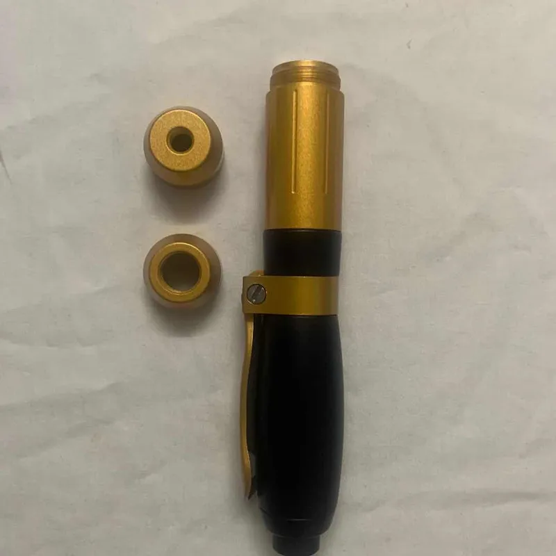 3 Ручка гиалурона с регулируемым давлением для лифтинга губ против морщин 2in 1 ручка гиалуроновой кислоты мезо инжекторный пистолет для инъекций наполнителя губ Примечание: Не включает наполнитель/кислоту Описание товара: Тип: ручка с гиалуроновой кислотой Характеристики: удаление кровеносных сосудов, омоложение кожи, темные круги, удаление морщин, потеря веса, увлажнение, отбеливание, увлажнение Материал: нержавеющая сталь 316 Объем: 0,5 мл/0,3 мл Управление режим: multi Управление (3 передач Управление)/0,3 и 0,5 головки 1. Функция (1) Омоложение кожи, удаление морщин и удаление пигментации; (2) подъем губ, потеря веса; (3) подтяжки кожи, улучшения метаболизма кожи, против старения; (4) активация коллагеновых клеток, Повышение эластичности и блеска кожи; (5) Удалите тонкие линии лица и лапы ворона, простые линии слов и т. д. 2. Характеристика (1) без иглы Многие люди страдали от игольчатой фобии. Наша технология без игл облегчает игольную фобию без игл. (2) практически без боли Быстрая инъекция менее 1/3 секунды, микро отверстие и автоматическое пружинное давление делают инъекции с «серой» практически безболезненными. (3) быстрый, легкий и безопасный Использование простое. Он может быть использован пациентами для самостоятельной инъекции, или другие лица могут вводить инъекции назначенного лекарства. (4) отсутствие риска травм игольчатой палки Он устраняет повреждения игольчатой палочки, так как Сера не содержит иглы, тем самым снижая затраты на удаление Устраняет перекрестное загрязнение. (5) сопло и адаптер стерилизованы гамма-облучением Они одноразовые, что исключает возможность перекрестного загрязнения. (6) длительный срок службы и низкое техническое обслуживание