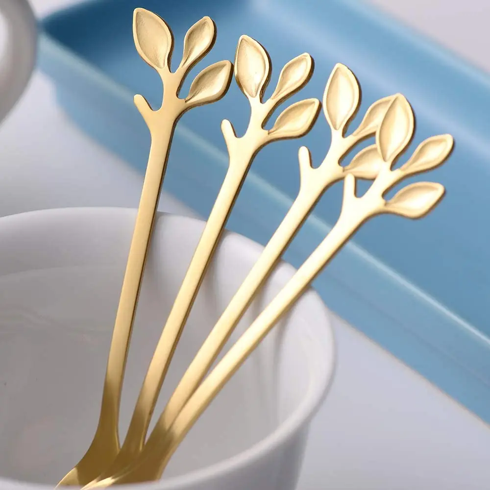 Изготовлен из высококачественной нержавеющей стали 410. Цельный дизайн, легко чистить без грязи. Зеркальная полированная конструкция, гладкая и красивая. Умное использование ветки/листьев дизайн, стильный и красивый Золото и серебро также являются хорошим подарком для пар.