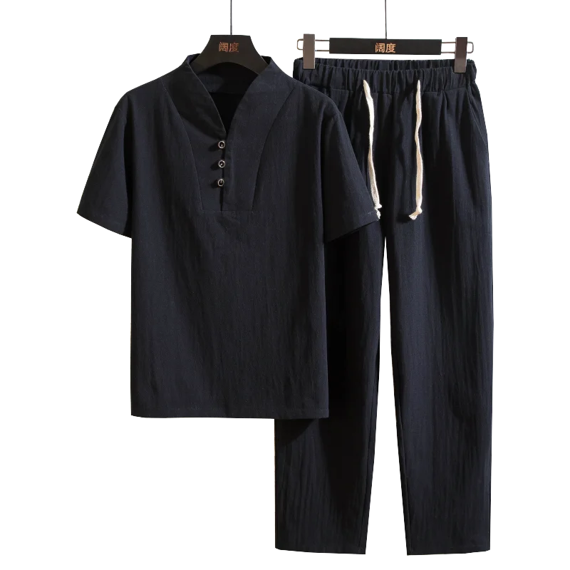 KOLMAKOV 2021 новые хлопковые льняные мужские комплекты нижнего белья Комплект с рисунком для мальчиков, футболка с короткими рукавами + брюки Однотонная повседневная обувь комплект из двух предметов, мужской спортивный костюм 4 цвета S-5XL A348-TZ607